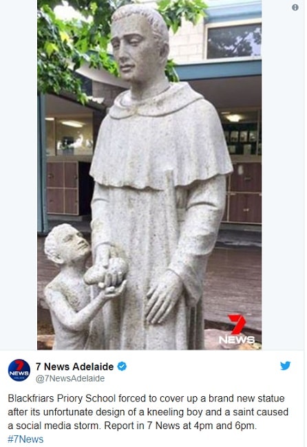 ADELAIDE – La statua con San Martino che dà del pane a un bambino povero è stata coperta. Accade nella scuola cattolica Blackfriars di Adelaide, in Australia: la statua,l infatti, aveva scatenato diverse polemiche per colpa di una pagnottella decisamente ambigua vista la posizione all’altezza del ventre del santo raffigurato.