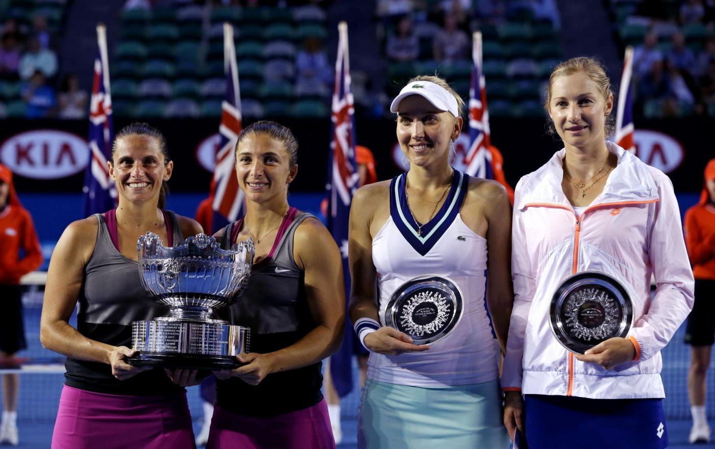 Le due azzurre hanno conquistato la vittoria nel torneo di doppio dell’Australian Open primo torneo dello Slam. Battute le russe Makarova e Vesnina in tre set, con una rimonta incredibile nel terzo parziale che permette alle due tenniste italiane di entrare nella leggenda e bissare il successo del 2013.