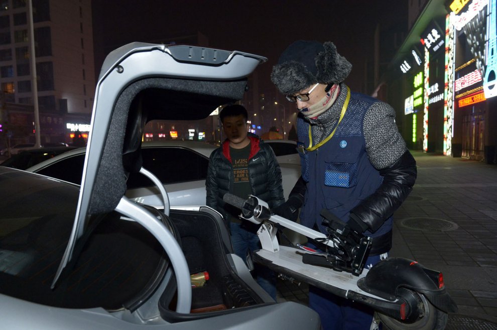 Gli autisti sono in attesa di clienti nei locali più frequentati della notte: bar, ristoranti e karaoke. Caricano il loro monopattino elettrico nel portabagagli della macchina del cliente e, una volta accompagnato macchina e proprietario ubriaco a casa, prendono il monopattino e rientrano alla base. Guardate il foto-reportage di Lapresse.