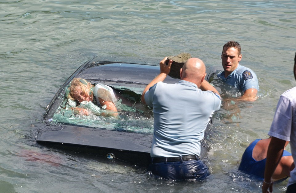 AUCKLAND (NUOVA ZELANDA) – Una donna caduta in acqua con la sua Bmw è stata salvata grazie all’intervento di due agenti di polizia che si è precipitata in acqua rompendo il lunotto posteriore dell’auto con una pietra.