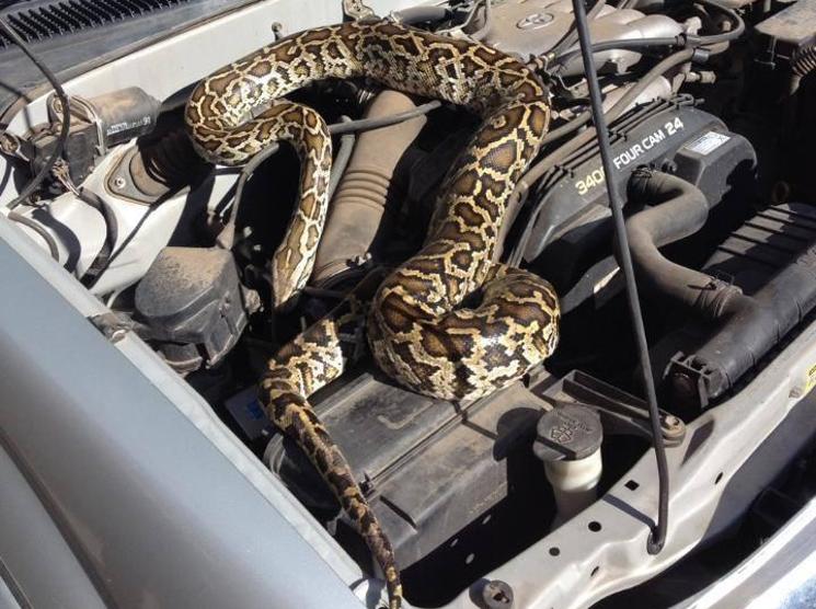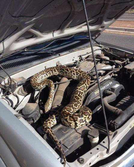 ROMA – In New Mexico una donna stava guidando l’auto quando ha iniziato ad avere qualche problema con il motore. Fermatasi a chiedere aiuto ha trovato un uomo pronto a dare un’occhiata sotto il cofano del mezzo. Lì la sorpresa: c’era un esemplare femmina di pitone di 9 kg, ben aggrappato all’auto.