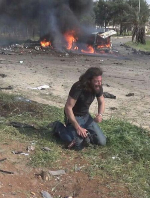 Altre persone presenti sul posto hanno immortalato il suo coraggio e il suo dolore e la foto è finita su Twitter e Facebook. Si tratta di un’immagine simbolo. Nello scatto, accanto ad Abd Alkader Habak c’è il corpo di un bambino ucciso dalla bomba. Sul suo profilo Twitter il fotografo, dopo l’attentato, ha scritto: “Quello che io e i miei colleghi abbiamo fatto dovrebbe ispirare l’umanità e tutti coloro che hanno contribuito a uccidere i bambini di Khan Sheikhan”.