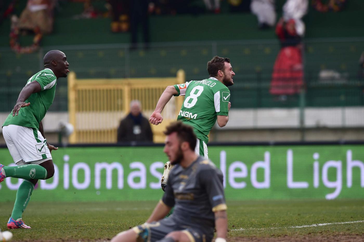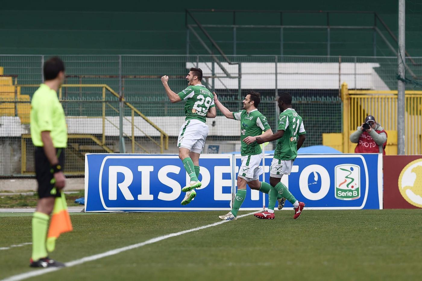 AVELLINO – Vittoria rotonda dell’Avellino che piega il Frosinone 3-0 e si rilancia nella congestionata zona play off Serie B. Partita giocata a viso aperto da entrambe le squadre ma l’Avellino, con le reti ad inizio tempo di Trotta (5′ pt), su rigore per atterramento in area di Mokulu da parte di Russo, e di D’Angelo (6′ st) spegne la rincorsa degli ospiti che nella seconda metà della gara sono quasi del tutto spariti in fase offensiva mentre l’Avellino ha continuato ad attaccare fino alla rete, la 14/a in campionato, di Castaldo (39′ st) che, partito dalla panchina, di controbalzo realizza mandando la sfera all’incrocio dei pali. Per l’Avellino di Massimo Rastelli è la terza vittoria consecutiva dopo quelle ottenute con La Spezia e Latina.