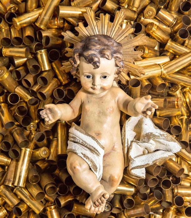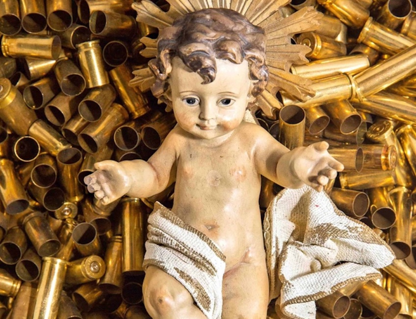 Bambinello su un letto di bossoli: il presepe dei frati di Assisi