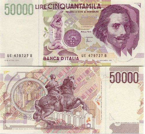 Le vecchie banconote da 50mila lire con la firma di Carlo Azeglio Ciampi (allora governatore della Banca d’Italia) e con il volto di Gian Lorenzo Bernini con serie XE (già fuoricorso al momento del cambio in euro) valgono da 300 a mille euro. Sono state infatti stampate in soli 40mila esemplari. A un’asta un singolo pezzo venne addirittura battuto a 2.500 euro.