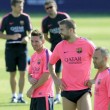 BARCELLONA, SPAGNA – Smaltite la delusione della finalissima dei mondiali di Brasile 2014, Lionel Messi si รจ ripresentato agli allenamenti nel centro sportivo del Barcellona, diretti dalla vecchia conoscenza del calcio italiano Luis Enrique, ex allenatore della Roma. E, come si vede, il campione argentino Lionel Messi ha sfoggiato un nuovo taglio, per cosรฌ dire, ยซtatticoยป.