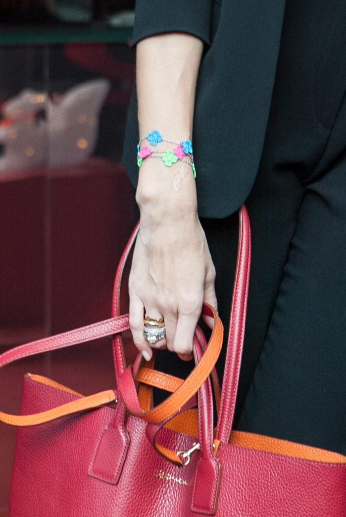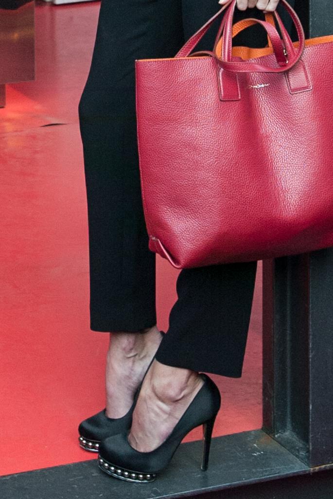 La moglie di Stefano De Martino, all’inaugurazione del punto vendita di questo marchio che produce braccialetti molto trend (Belen, ovviamente ne aveva uno al polso) ha sfoderato un tacco vertiginoso e una grossa borsa rossa (foto LaPresse)