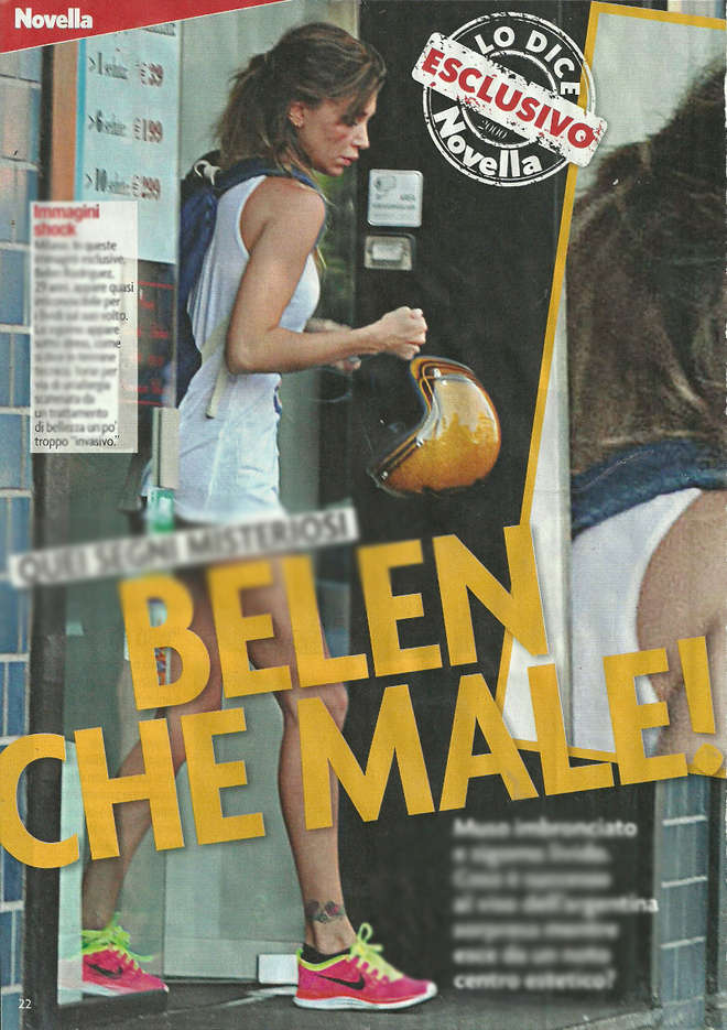 MILANO – Una Belen Rodriguez irriconoscibile è stata fotografata da Novella2000. La showgirl argentina, all’uscita di un centro estetico milanese, aveva il volto un po’ gonfio e un livido sugli zigomi.