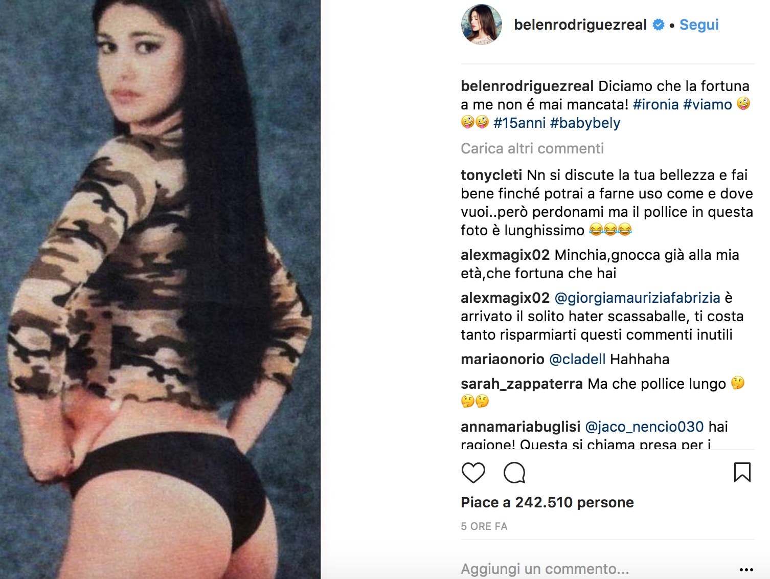 Belen Rodriguez e la foto a 15 anni su Instagram per smentire le accuse di ritocchi (Foto Instagram)