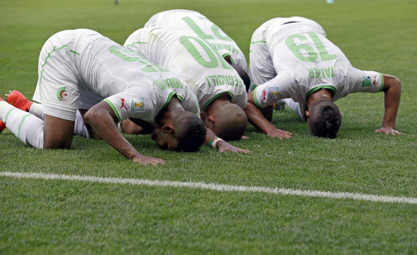 Prima dell’inizio del match, il primo del gruppo H, alcuni giocatori algerini, Nabil Bentaleb, El Arbi Hillel Soudani e Mehdi Mostefa  nel cerchio di centrocampo hanno pregato Allah. Poi, dopo il gol di Feghouli, Faouzi Ghoulam e altri compagni si sono inchinati a terra rivolti a La Mecca.