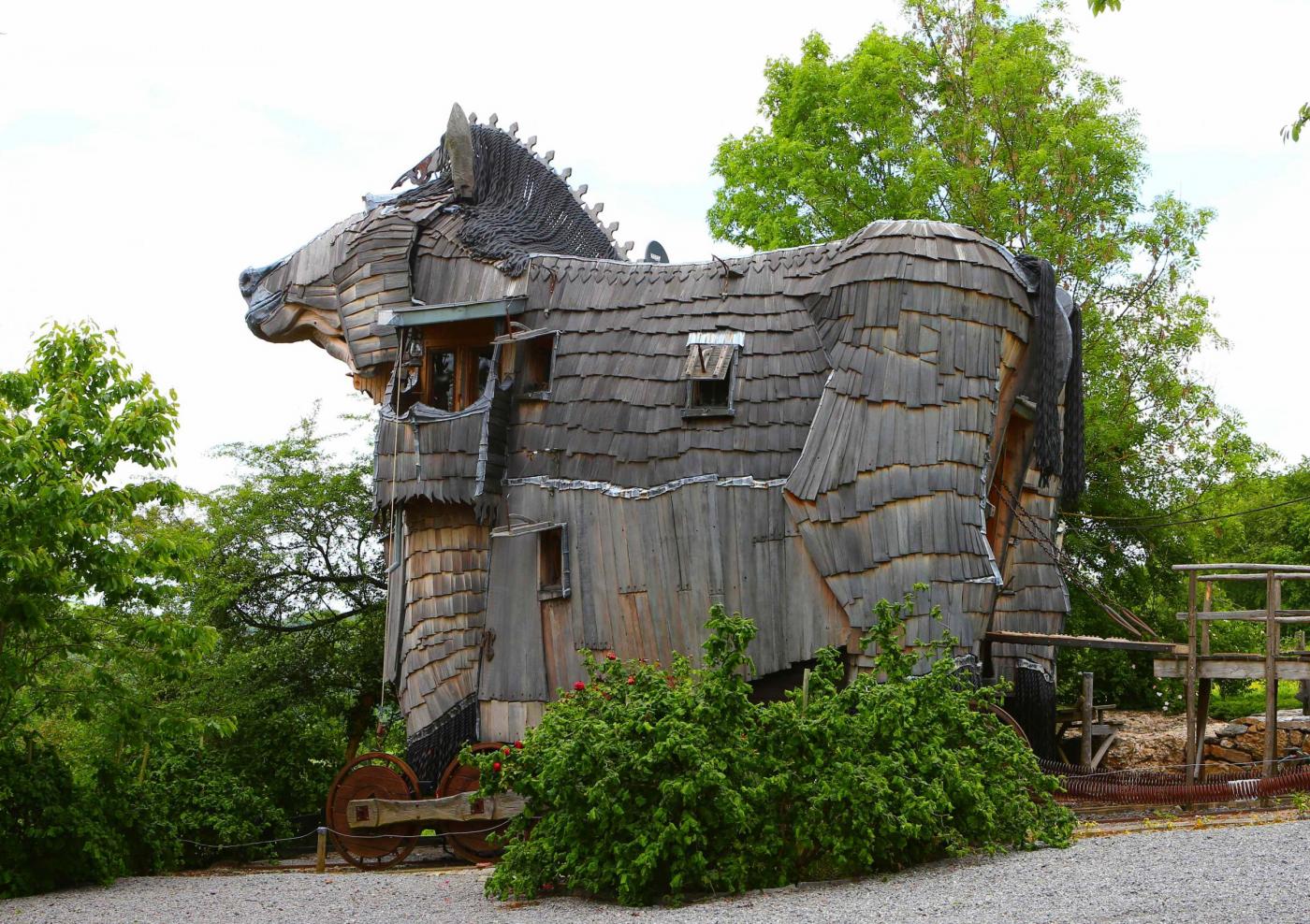 All’interno dell’hotel La Balad des Gnomes si possono trovare delle stanze dei troll in stile ”Signore degli Anelli” e una suite a due piani con le sembianze del cavallo di Troia. Gli alloggi della struttura che si trova a pochi chilometri dalla cittadina medievale di Durby, sembrano essere tutti usciti da una fiaba. L’albergo, oltre ad essere innovativo per la forma, è realizzato interamente con materiali naturali.
