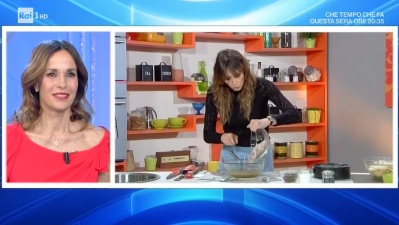 Benedetta Parodi, a giudicare dalle foto e dal video visibile cliccando qui, non si ferma a rispondere ad Angela Rafanelli che le chiede di poter assaggiare la torta appena cucinata.
