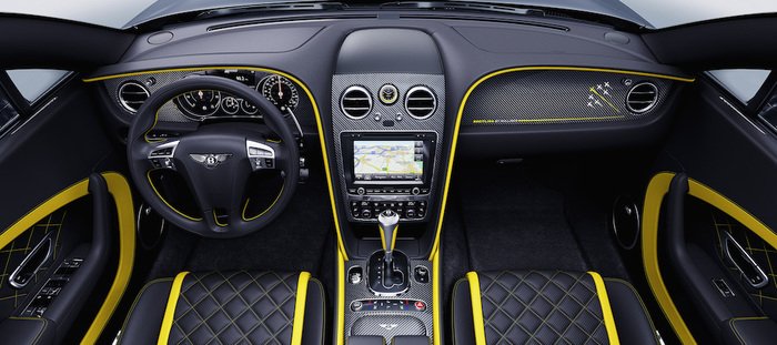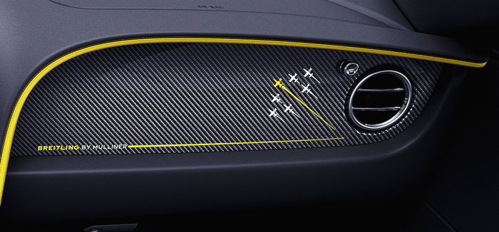 Interamente costruita a mano, questa serie speciale della più veloce di sempre tra le ”B alate” presenta una particolare carrozzeria bicolore con sottolineature in giallo Breitling, proprio come i jet L-39 Albatros del team. La caratterizzazione cromatica è ripresa all’interno, a cominciare dai rivestimenti dei sedili, lavorati con cuciture gialle.