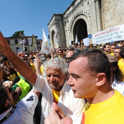PERUGIA – “Il reddito di cittadinanza non è un’elemosina”: Beppe Grillo parla dalla marcia Perugia-Assisi indetta dal Movimento 5 stelle per promuovere la loro proposta di un reddito di cittadinanza. Indossando una t-shirt in cui si paragona a San Francesco d’Assisi, il comico genovese avverte: