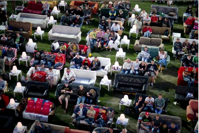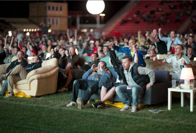 L’iniziativa è stata chiamata Weltmeisterschaft Wohnzimmer (“Salotto dei Mondiali”) è stata lanciata ad aprile ed ha ottenuto centinaia di adesioni. Sul terreno centrano solo 700 sofà e così è stato necessario fare un sondaggio. Tra gli iscritti all’iniziativa figurano anche persone venute dall’Inghilterra e dalla Francia.