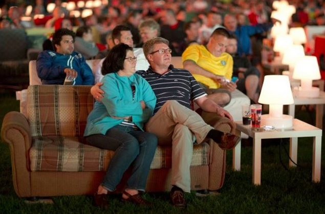 Il 12 giugno, per la partita inaugurale fra Brasile e Croazia, allo Stadion An der Alten Försterei, sul prato verde erano disposti centinaia di divani. L’Ap ha realizzato delle foto dell’impianto che normalmente ospita circa 20 mila tifosi, con i divani disposti ordinatamente sul prato: