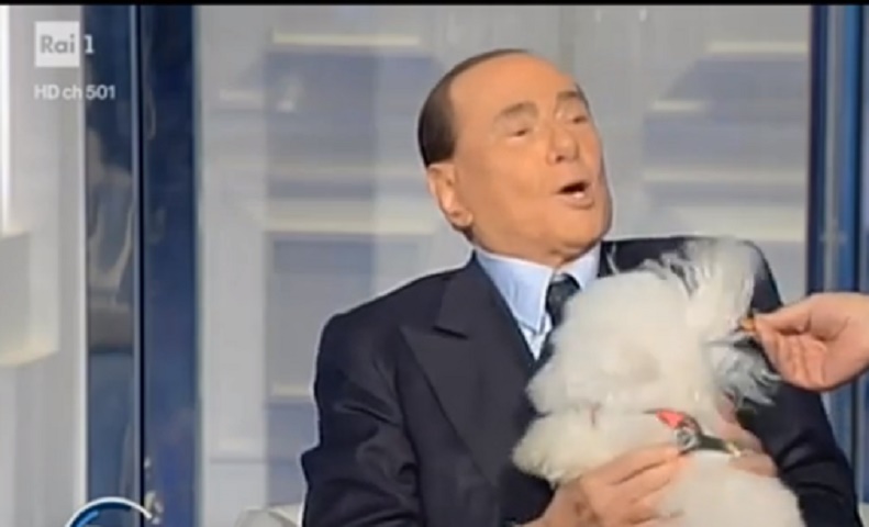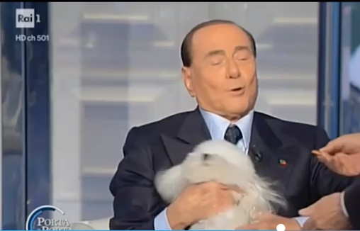 Si parla anche del partito animalista e Vespa porta all’ex premier un cagnolino simile a Dudù. L’animale vuole però scappare e Berlusconi ci scherza su: “Mi bastano tre minuti per farmi conoscere”.