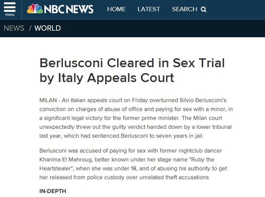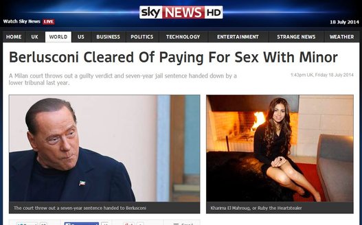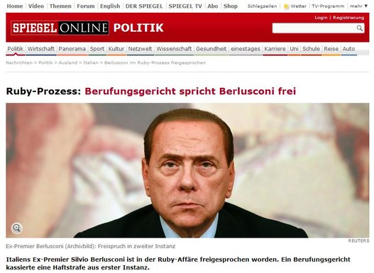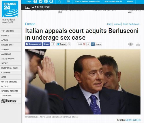 ROMA – I siti dei media internazionali hanno dato subito rilievo alla notizia dell’assoluzione di Silvio Berlusconi, nel processo d’appello per il “Rubygate’.