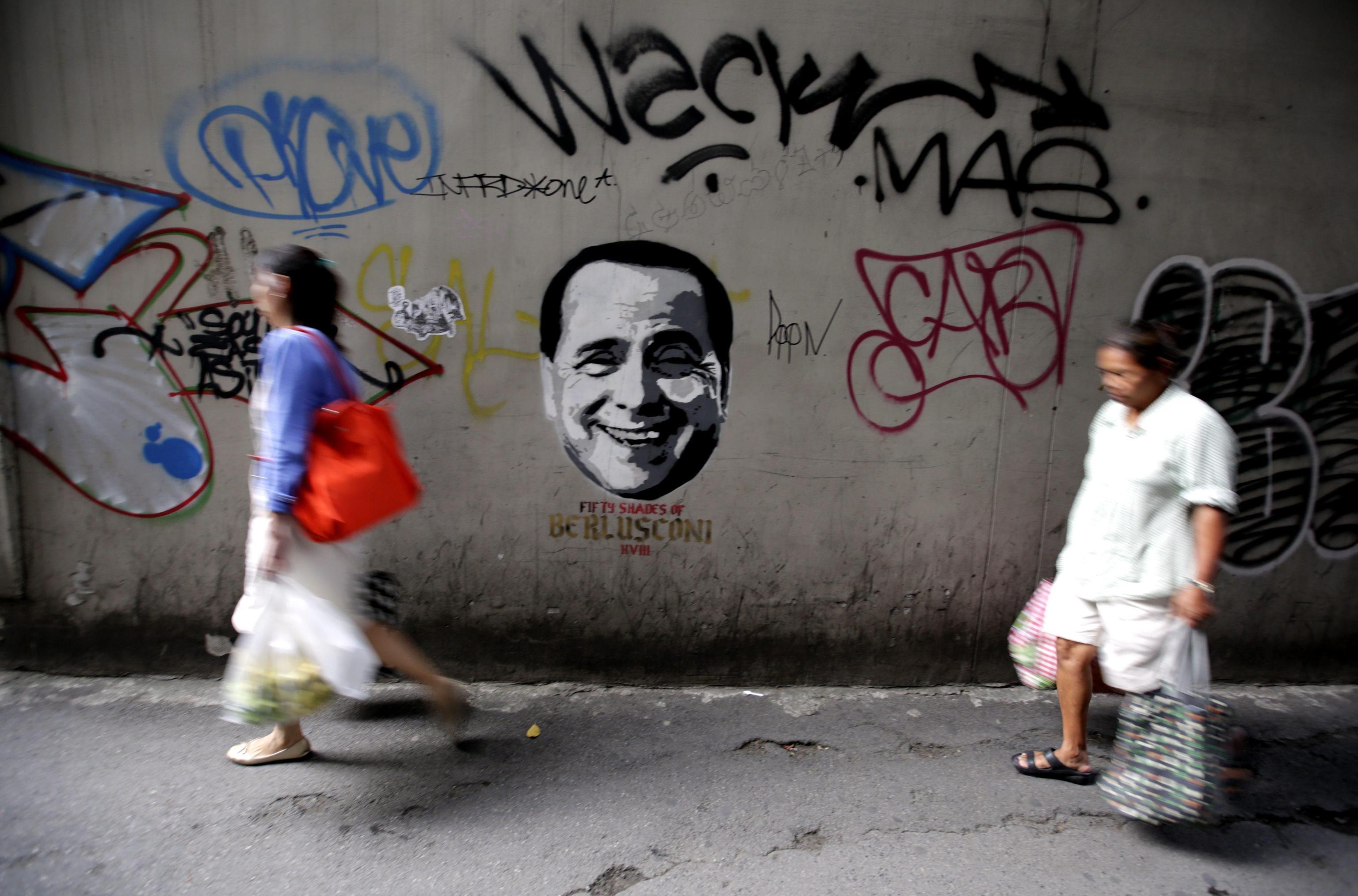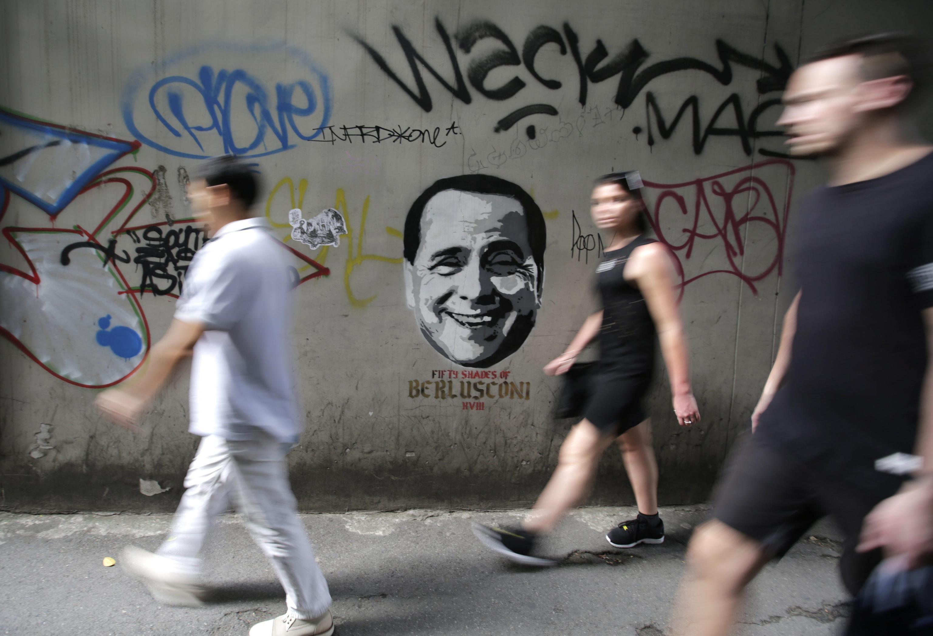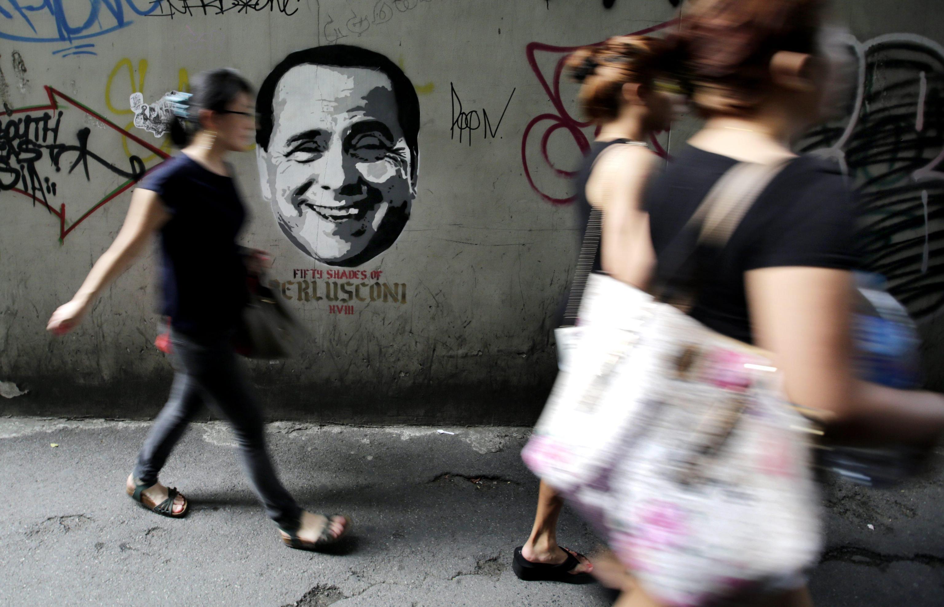 Berlusconi viene raffigurato con il volto sorridente: sotto al disegno appare la ‘didascalia’ Fifty shades of Grey (Cinquanta sfumature di grigio), con evidente riferimento ironico ai suoi guai giudiziari. A seguire le foto Ansa.