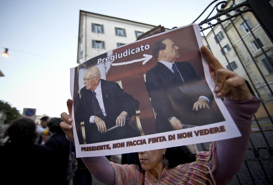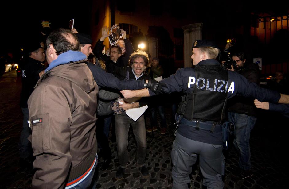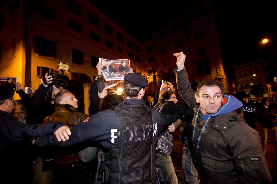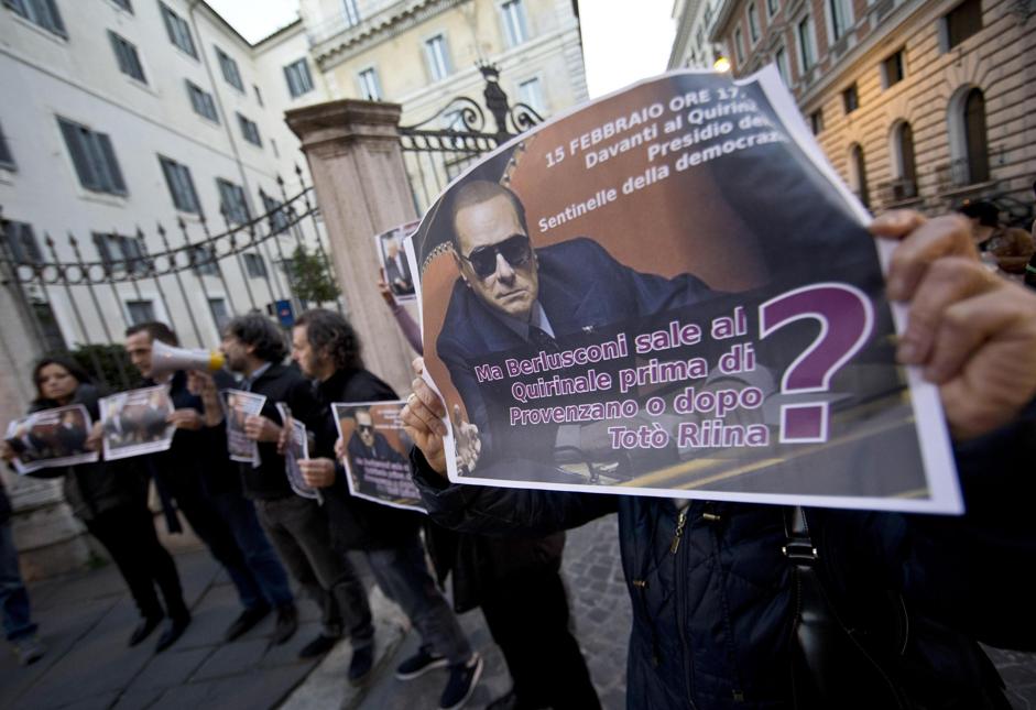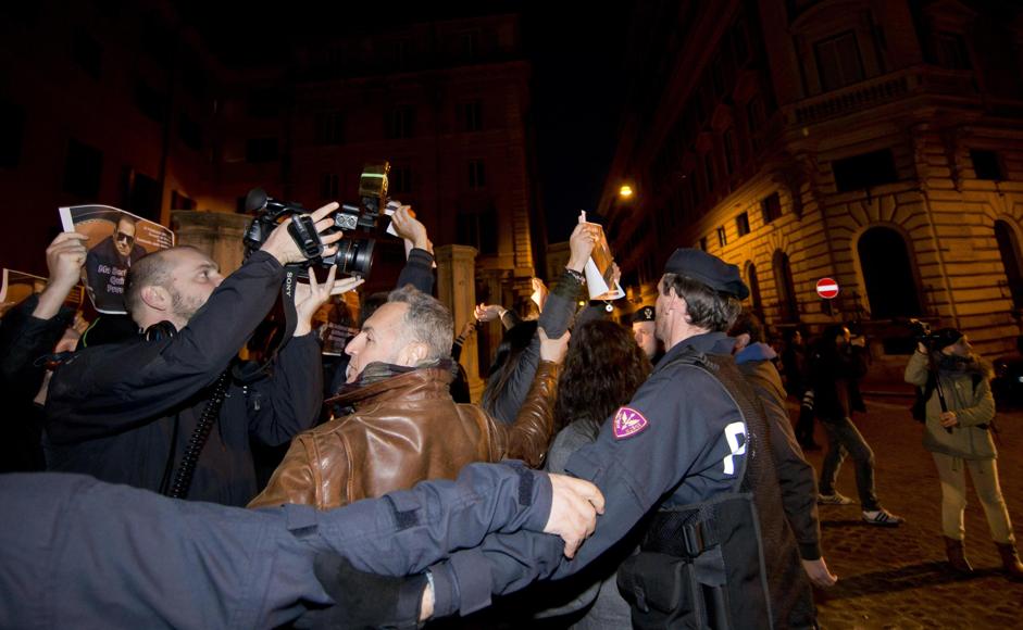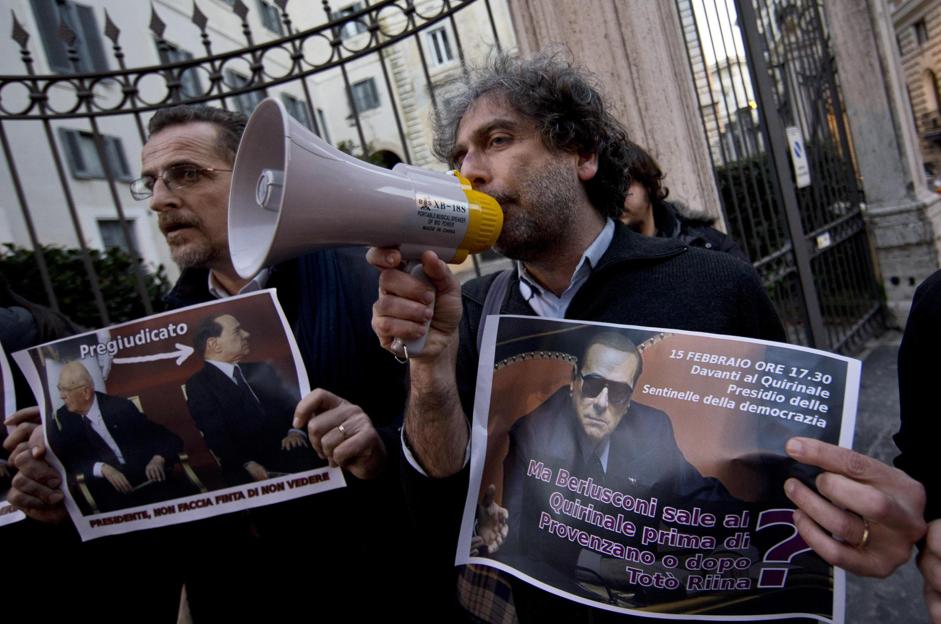 “Armati” di cartelli con le scritte “Pregiudicato” e “Ma Berlusconi sale al Quirinale prima di Provenzano o dopo Totò Riina?”, i protestanti guidati da Gianfranco Mascia hanno creato un po’ di trambusto all’arrivo della macchina dell’ex premier.