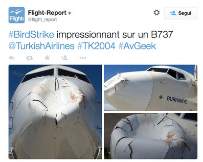 Gli uccelli che si sono scontrati con il Boeing della Turkish hanno provocato gravi danni all’ogiva dell’aereo, come si può notare dalle foto pubblicate su Twitter. Il Boeing ha subito ammaccature anche alla parte anteriore e alle ali, ma è riuscito ad atterrare senza problemi. Il volo di ritorno, però, è stato cancellato.