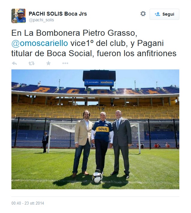 Nel commento al suo viaggio in Argentina, Grasso sul suo profilo Facebook non accenna all’emozionante esperienza alla Bombonera: