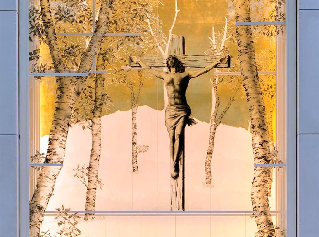 Il capo ultrà svetta nell’immagine di Gesù creata da Andrea Mastrovito, 37 anni, di Bergamo, l’artista autore di una abside iper moderna costruita su vetrate colorate e a più livelli, con immagini floreali che sembrano stringersi, senza mai toccarlo, attorno al Cristo in croce. La chiesa era stata aperta a giugno 2014. L’artista Mastrovito – come scrive il Corriere della Sera che oggi riporta la notizia – non ha mai fatto mistero della sua fede atalantina, della sua devozione alla Curva Nord: tra gli spalti lo chiamano infatti Giotto.