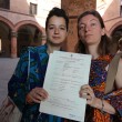 Le immagini delle prime coppie che si sono viste trascrivere le nozze (Ansa)