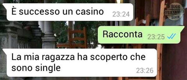 ROMA – La pagina Facebook si chiama “Boom. Friendzoned” (questo il link) ed è – con oltre un milione di fan – una delle pagine Facebook più popolari e amate. La pagina raccoglie le conversazioni più improbabili su WhatsApp tra le ragazze e i loro migliori amici. Migliori amici che sperano sempre di strappare qualcosa di più delle semplice amicizia dalle ragazze con cui parlano su WhatsApp. E ragazze che regolarmente ricordano al ragazzo il loro ruolo di amico. E niente più. Per l’appunto la “Friend zone”, la zona d’amicizia dove tutti sono costretti a restare.