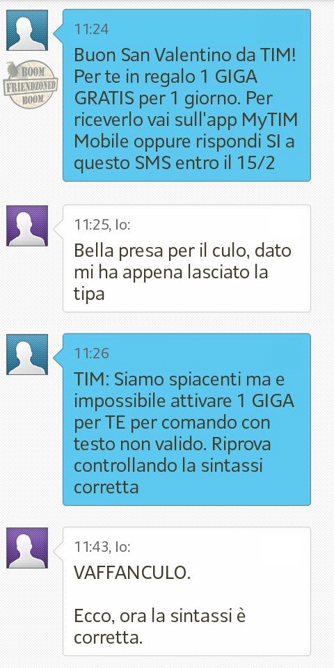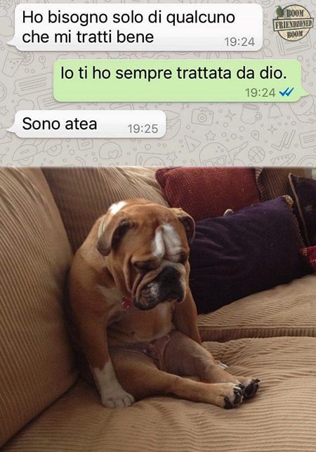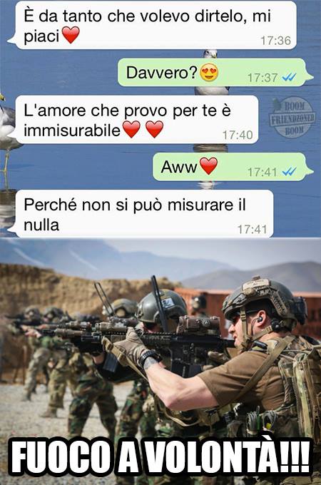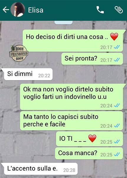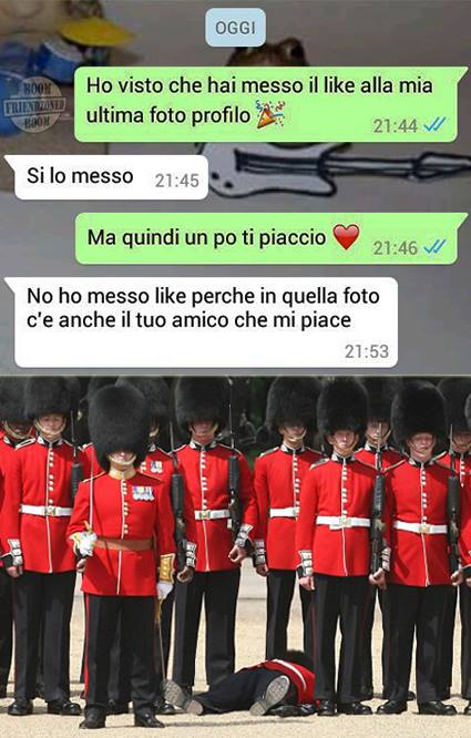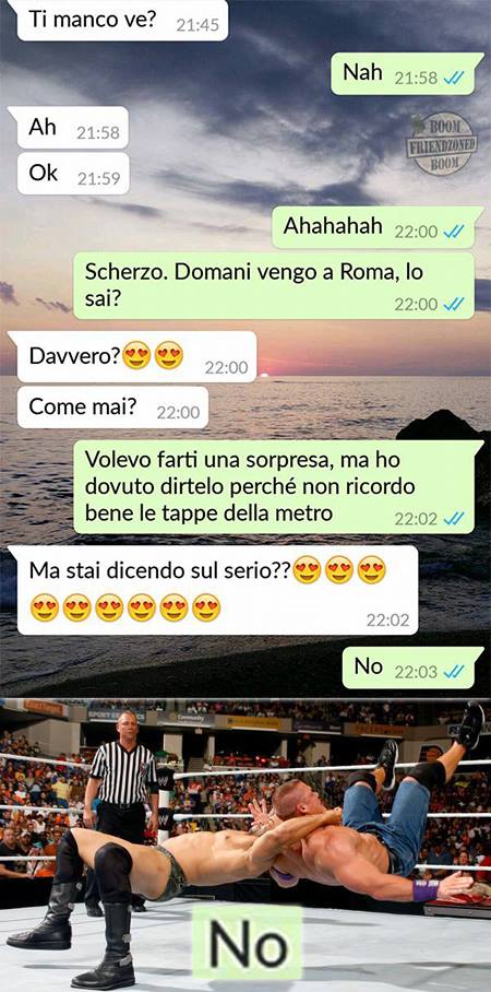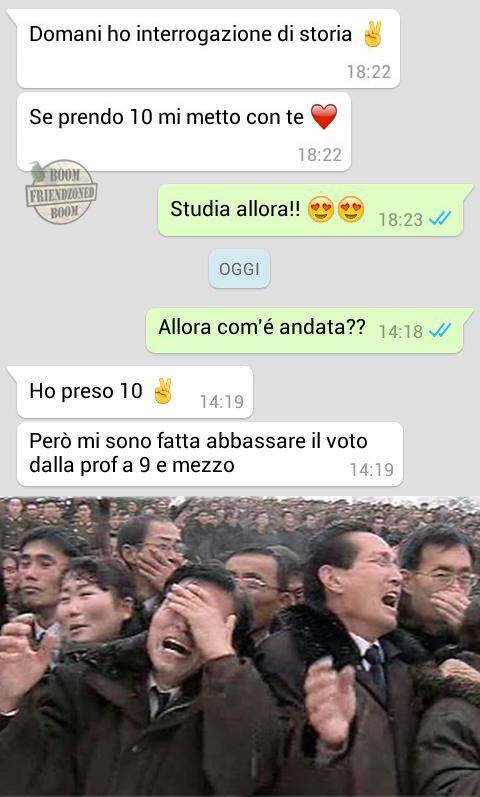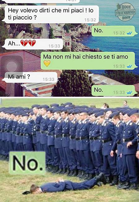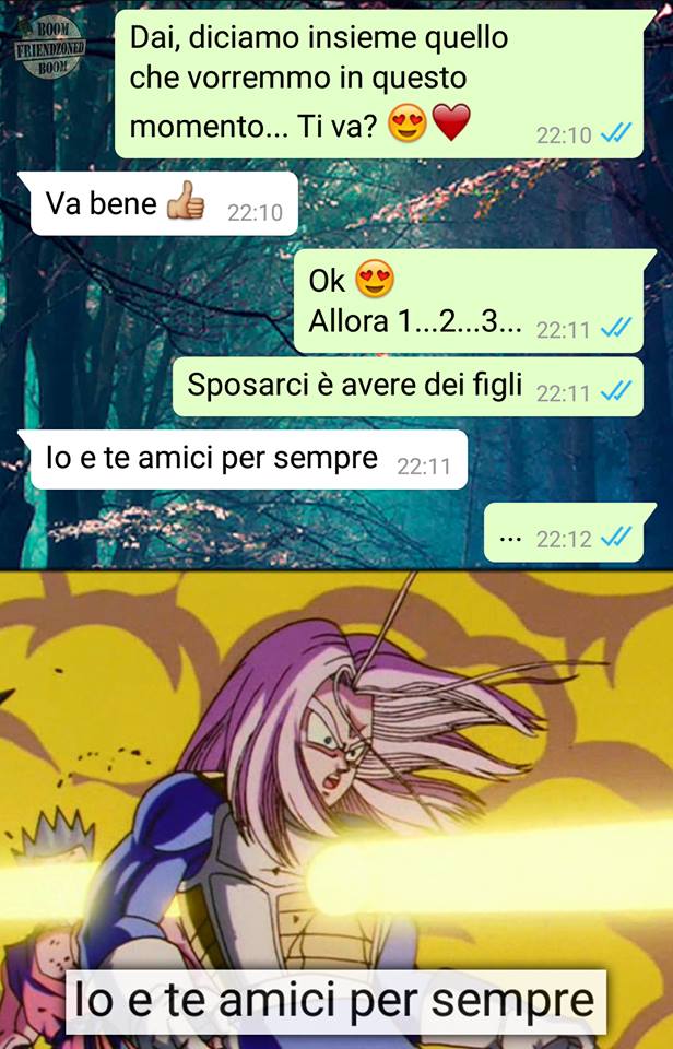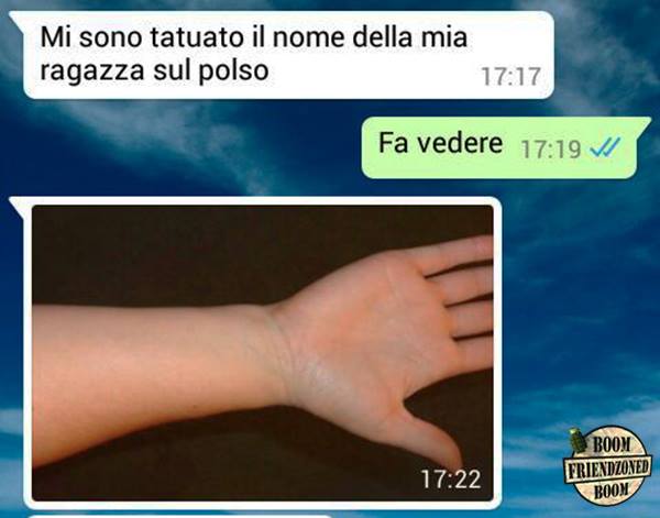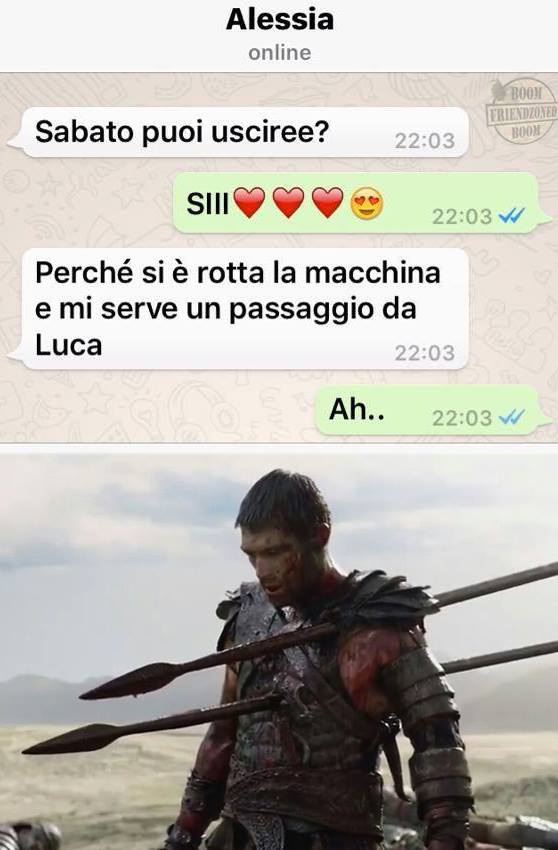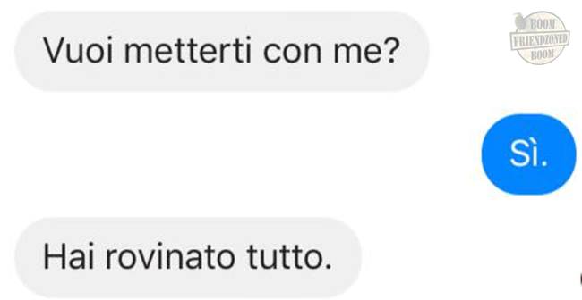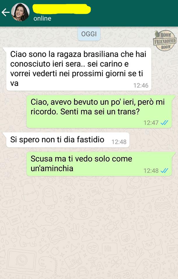 ROMA – La pagina Facebook si chiama “Boom. Friendzoned” (questo il link) ed è – con oltre un milione di fan – una delle pagine Facebook più popolari e amate. La pagina raccoglie le conversazioni più improbabili su WhatsApp tra le ragazze e i loro migliori amici. Migliori amici che sperano sempre di strappare qualcosa di più delle semplice amicizia dalle ragazze con cui parlano su WhatsApp. E ragazze che regolarmente ricordano al ragazzo il loro ruolo di amico. E niente più. Per l’appunto la “Friend zone”, la zona d’amicizia dove tutti sono costretti a restare.