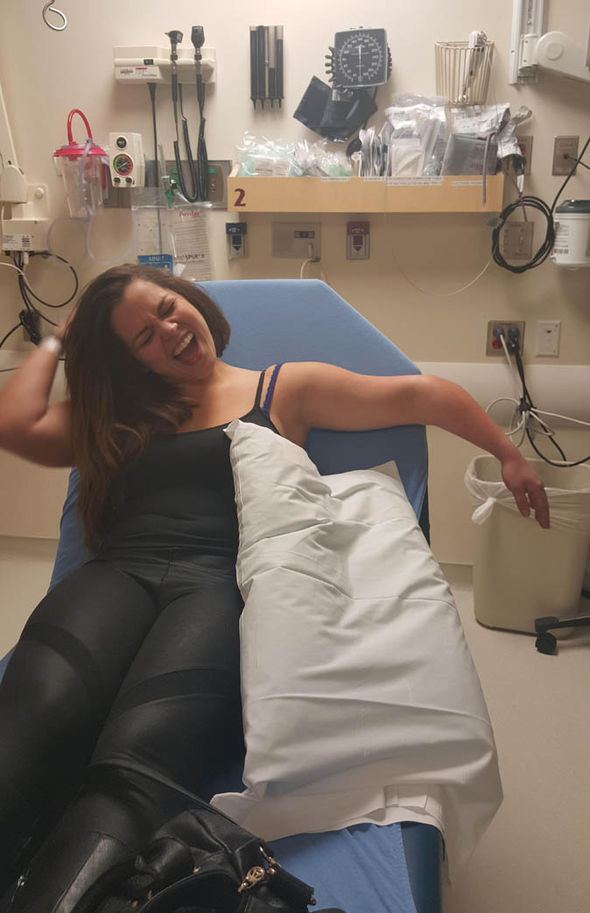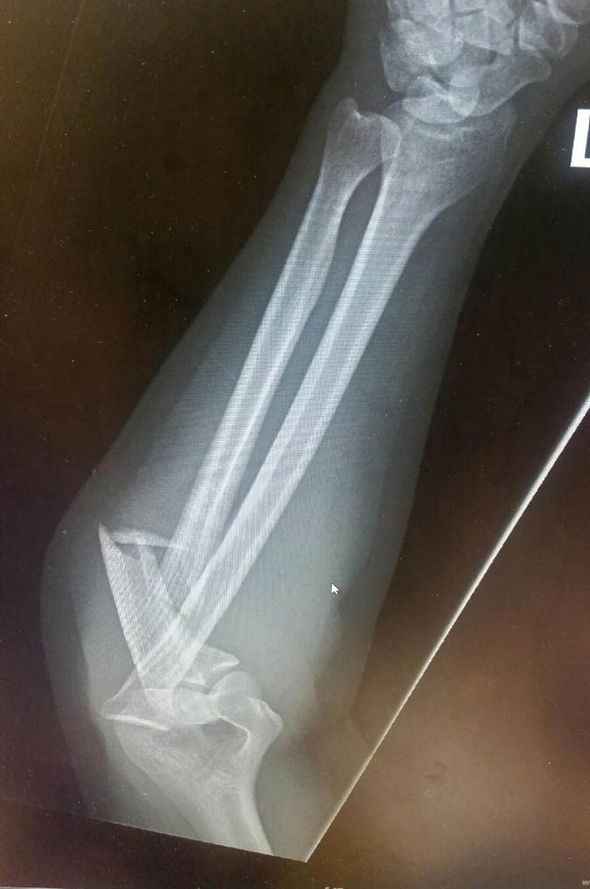 La frattura era molto grave e la ragazza ha avuto bisogno di un intervento chirurgico, ma ha continuato a ridere a trentadue denti nonostante l’evidente infortunio.