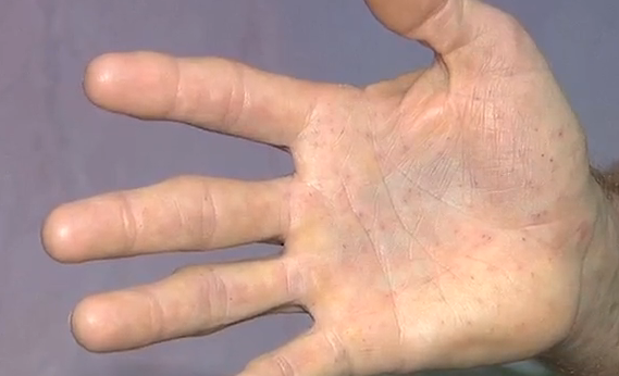 Attualmente si sta riprendendo ed ha la mano ancora piena di segni lasciati dagli aculei.