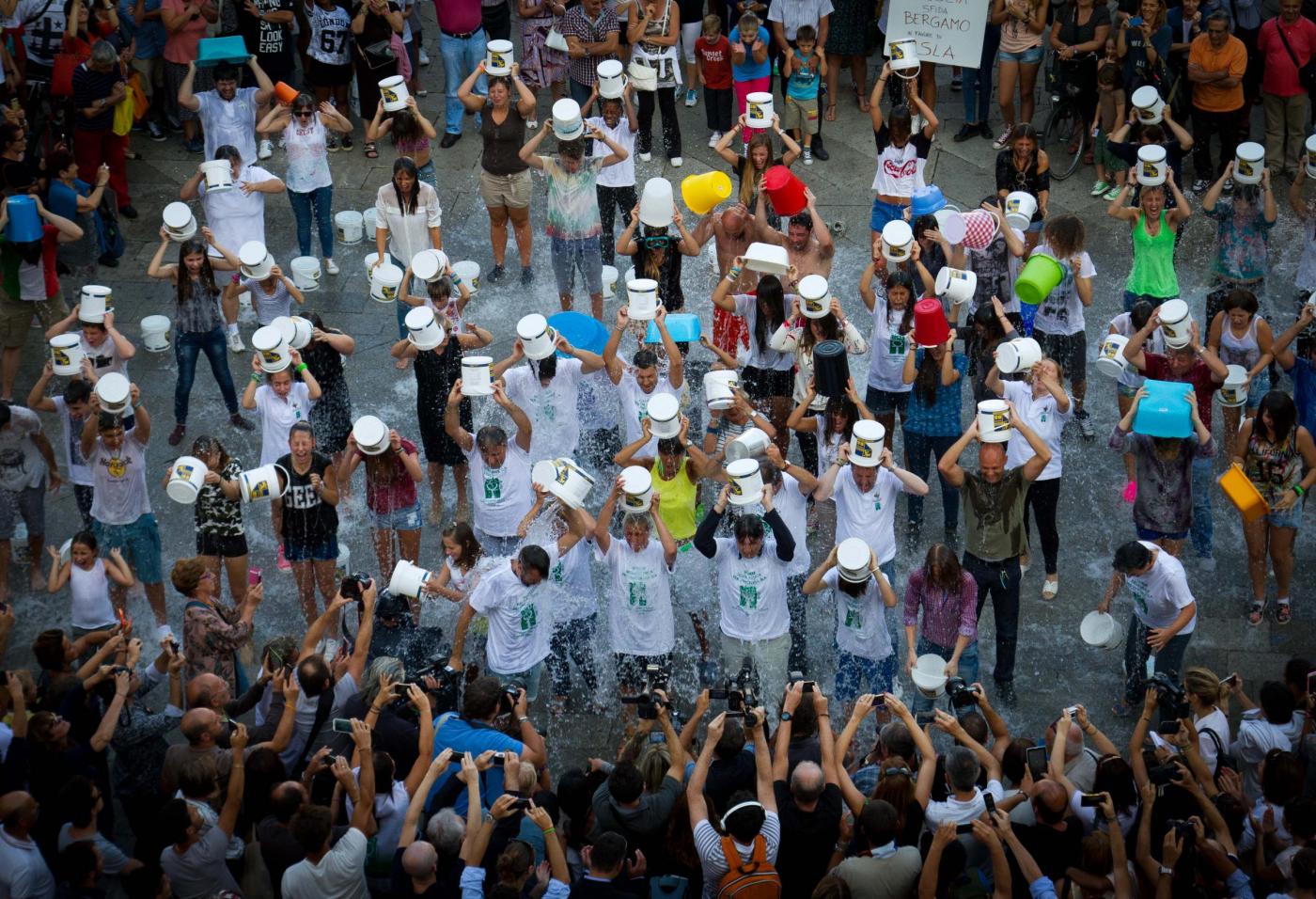 BRESCIA – La città di Brescia partecipa all’Ice Bucket Challenge, la doccia gelata contro la Sla. L’evento collettivo è nato su Facebook e si è svolto in piazza Loggia mercoledì 27 agosto alle 18. La secchiata gelata collettiva è una gara di solidarietà senza precedenti abbinata anche in questo caso, alla donazione a sostegno della Sla, Tutti uelli che partecipano devono nominare qualcuno. E così i bresciani hanno deciso di nominare i loro “cugini” bergamaschi.