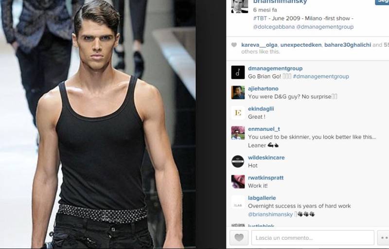 “28enne originario del New Jersey, inserito dal portale Models.com nella classifica degli uomini più sexy del mondo. Protagonista di un recente articolo sul New York Times, qui è con Donatella Versace, che l’ha voluto come protagonista della campagna del suo profumo Eros. «Un fusto eccezionale, paragonato a un dio greco per la chioma fluente e la mascella squadrata»: così è stato definito Brian, che vanta anche un talento particolare per il bricolage. Nel tempo libero si diletta a realizzare mobili, rigorosamente su commissione. Con discreti risultati: un suo tavolo da caffè in noce, ricavato da un albero abbattuto da una tempesta, è stato venduto a una serata di beneficenza con base d’asta di 500 dollari. Modello per caso: nel 2008, mentre è in fila per un concerto di John Mayer, una scout lo nota e gli chiede di posare per una foto estemporanea a torso nudo. Tre mesi dopo, viene ingaggiato per una campagna pubblicitaria di Dolce & Gabbana, fotografato da Mario Testino (…)