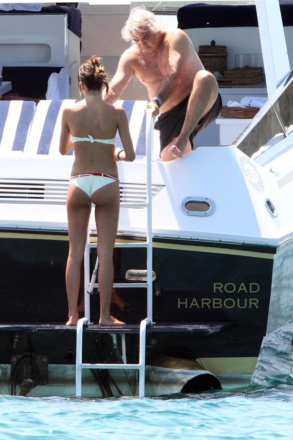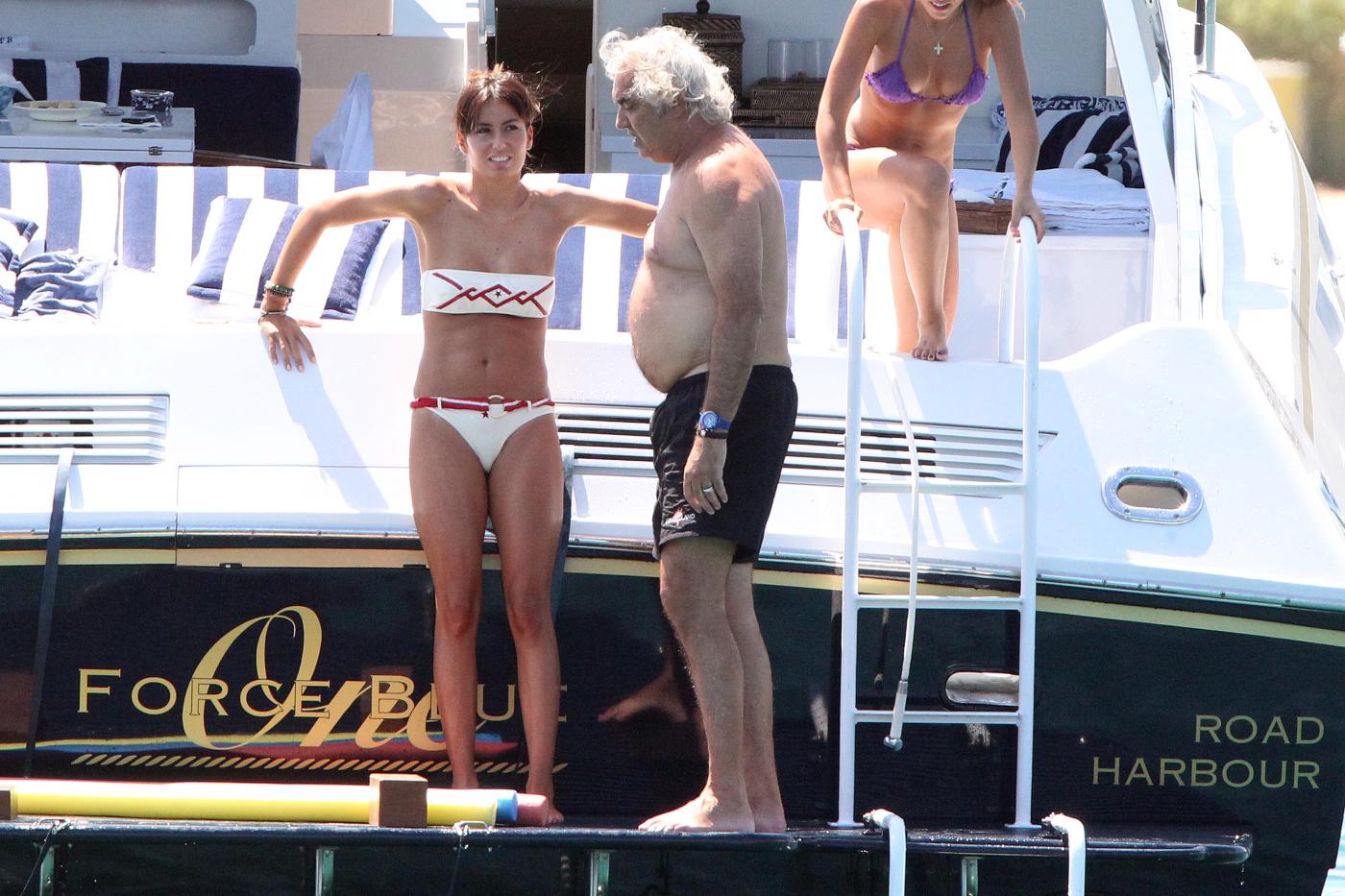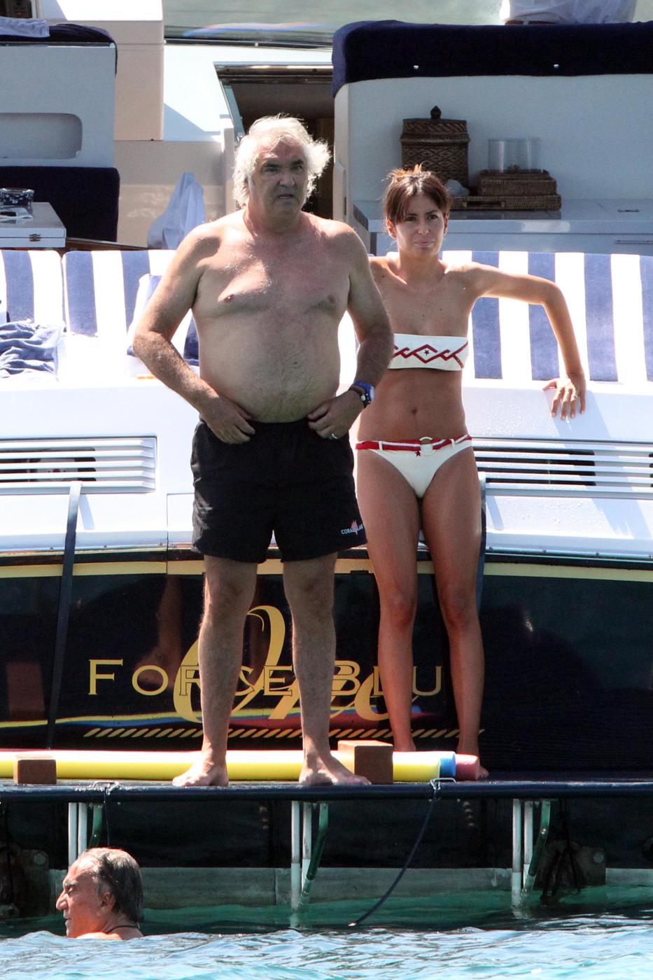Proprio alle Eolie la coppia trascorse la luna di miele nel 2008, a bordo del Force Blue ovviamente. Lo yacht, costruito dai cantieri “Royal Denship”, è stato comprato da Briatore per 100 milioni di euro. È lungo 63 metri, ha un un motore di 3600 cavalli e arredi di lusso. All’interno una Jacuzzi, una palestra, una SPA, una sala cinema e una discoteca.