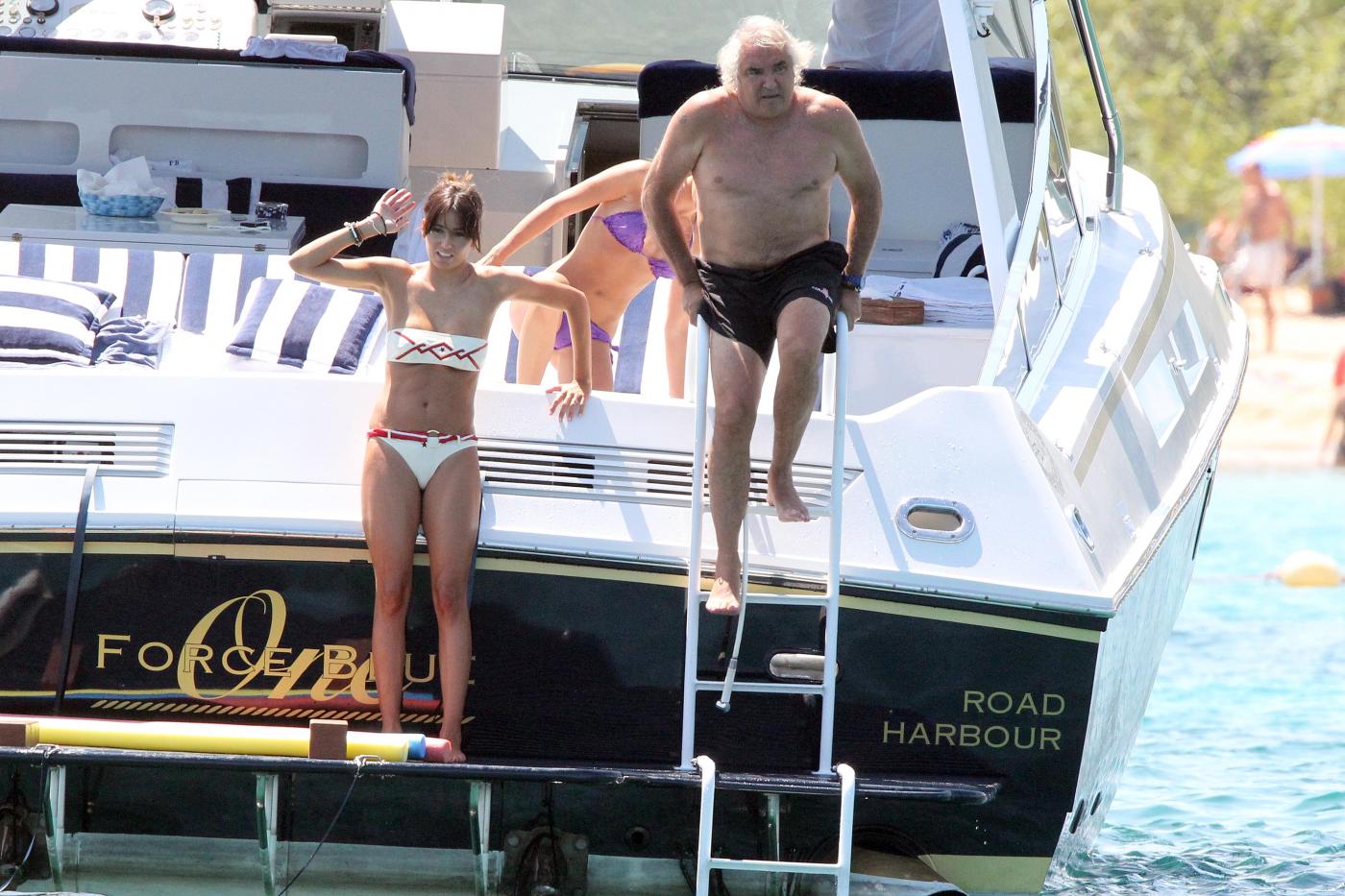 Proprio alle Eolie la coppia trascorse la luna di miele nel 2008, a bordo del Force Blue ovviamente. Lo yacht, costruito dai cantieri “Royal Denship”, è stato comprato da Briatore per 100 milioni di euro. È lungo 63 metri, ha un un motore di 3600 cavalli e arredi di lusso. All’interno una Jacuzzi, una palestra, una SPA, una sala cinema e una discoteca.