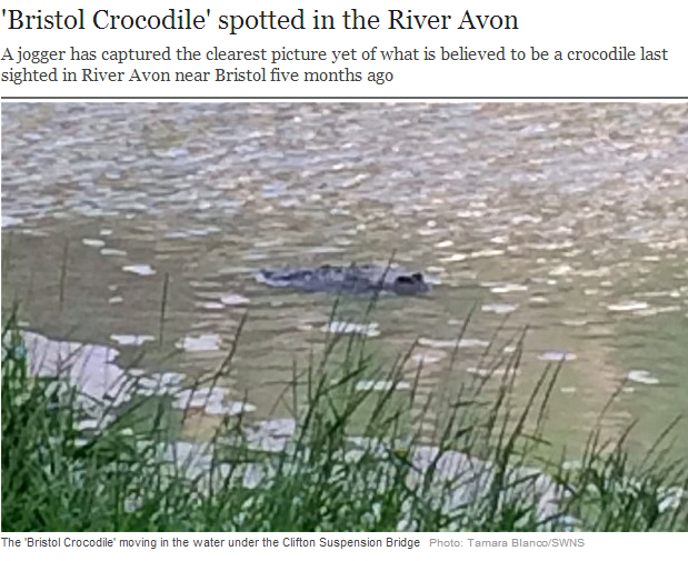 LONDRA – Un nuovo avvistamento non lascerebbe dubbi ai cittadini di Bristol. Nel fiume Avon c’è un coccodrillo e la caccia sembra essere partita. L’ultimo avvistamento, corredato da foto, è stato stato segnalato da Tamara Blanco, una ragazza spagnola di 29 anni che mentre faceva jogging lungo la riva del fiume ha fotografato una sagoma sospetta nelle acque dell’Avon.