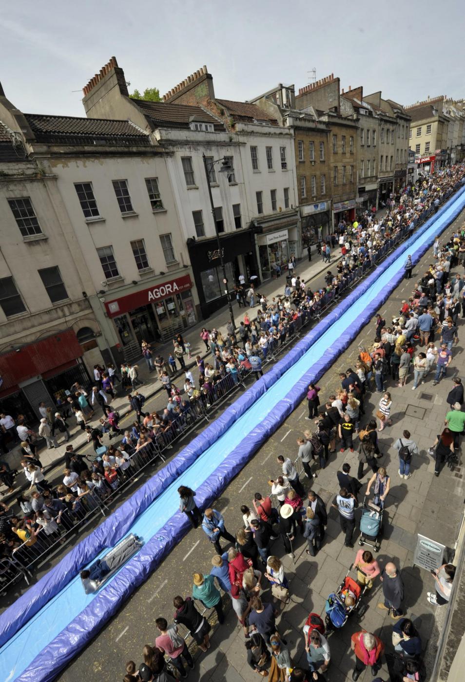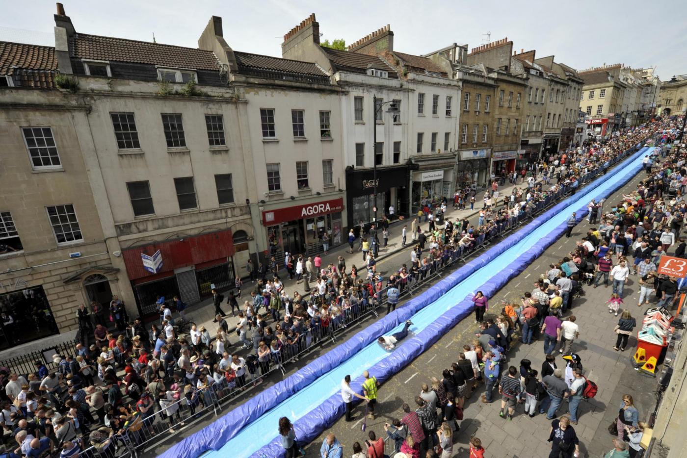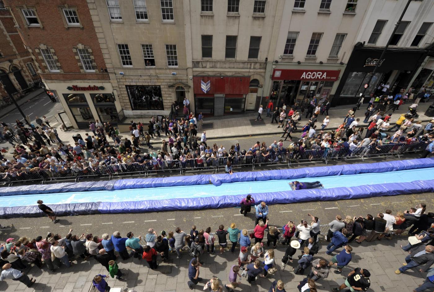 BRISTOL (REGNO UNITO) – La strada a Bristol, si trasforma in uno scivolo di 90 metri. L’artista Luke Jerram, ha voluto realizzare il progetto “Park and Slide”, con lo scopo di far riappropriare i cittadini dello spazio comune, percorrendo le strade della loro città in una maniera nuova.