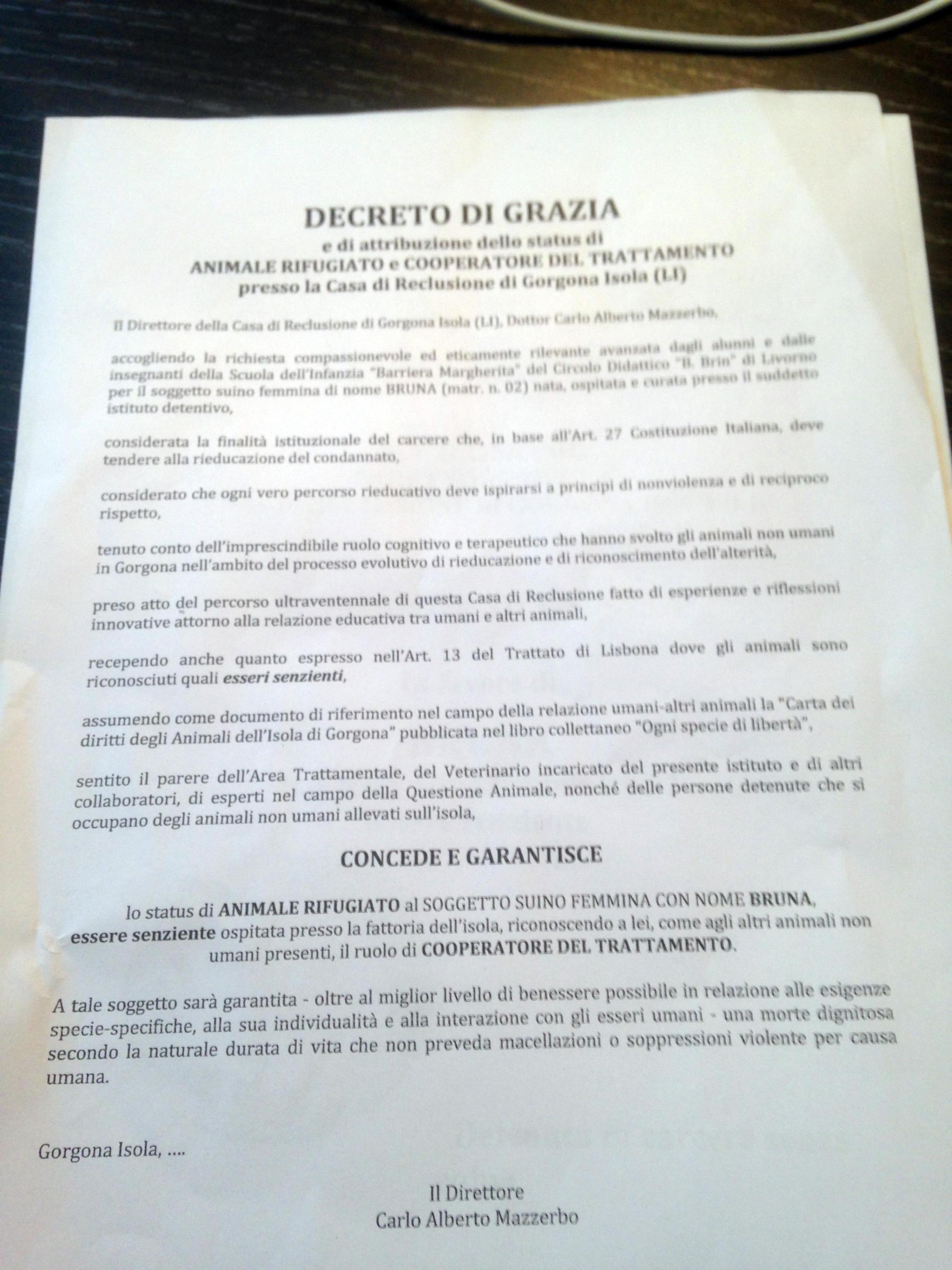 LIVORNO – Si chiamava “numero 002” e ora si chiama Bruna. Soprattutto era condannata al macello e ora, invece, è la prima maialina con lo status di “animale rifugiato”.