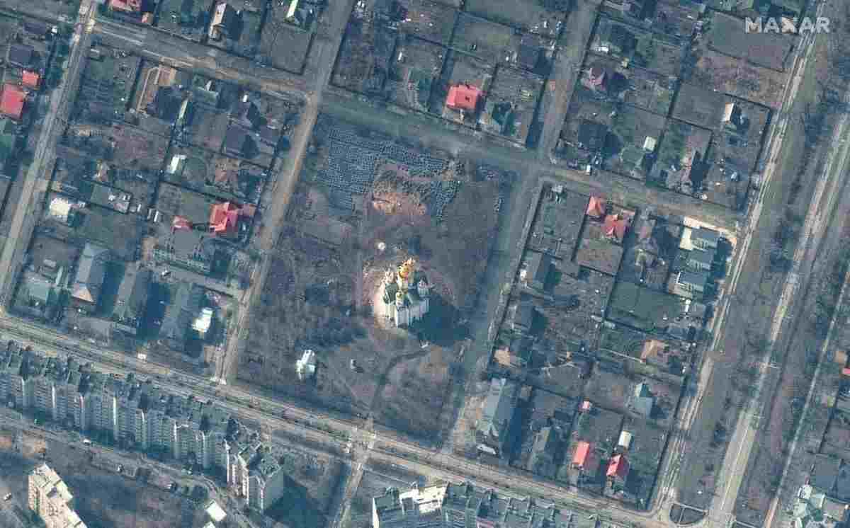 Bucha, immagini satellitari delle fosse comuni.Trovata una stanza della tortura