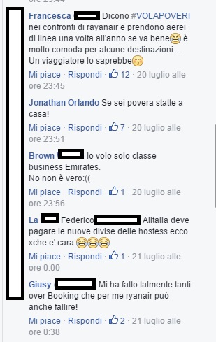 “Ma con i soldi che che avete, cercate una compagnia diversa, prima classe… a pidocchiosi” scrive un follower di Bastianich. Un’altra: “No ma veramente volate con Ryan air? Io se potessi lo eviterei come la peste, ma sono povera e di quello mi devo accontentare”.