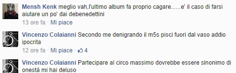 ROMA – Guerra su Facebook tra Caparezza e i simpatizzanti del Movimento 5 Stelle. Oggetto del contendere, questo post del cantante pugliese, che fa capire di non voler partecipare all’evento organizzato da Grillo al Circo Massimo (e, a essere sinceri, a nessun evento con connotazioni politiche).