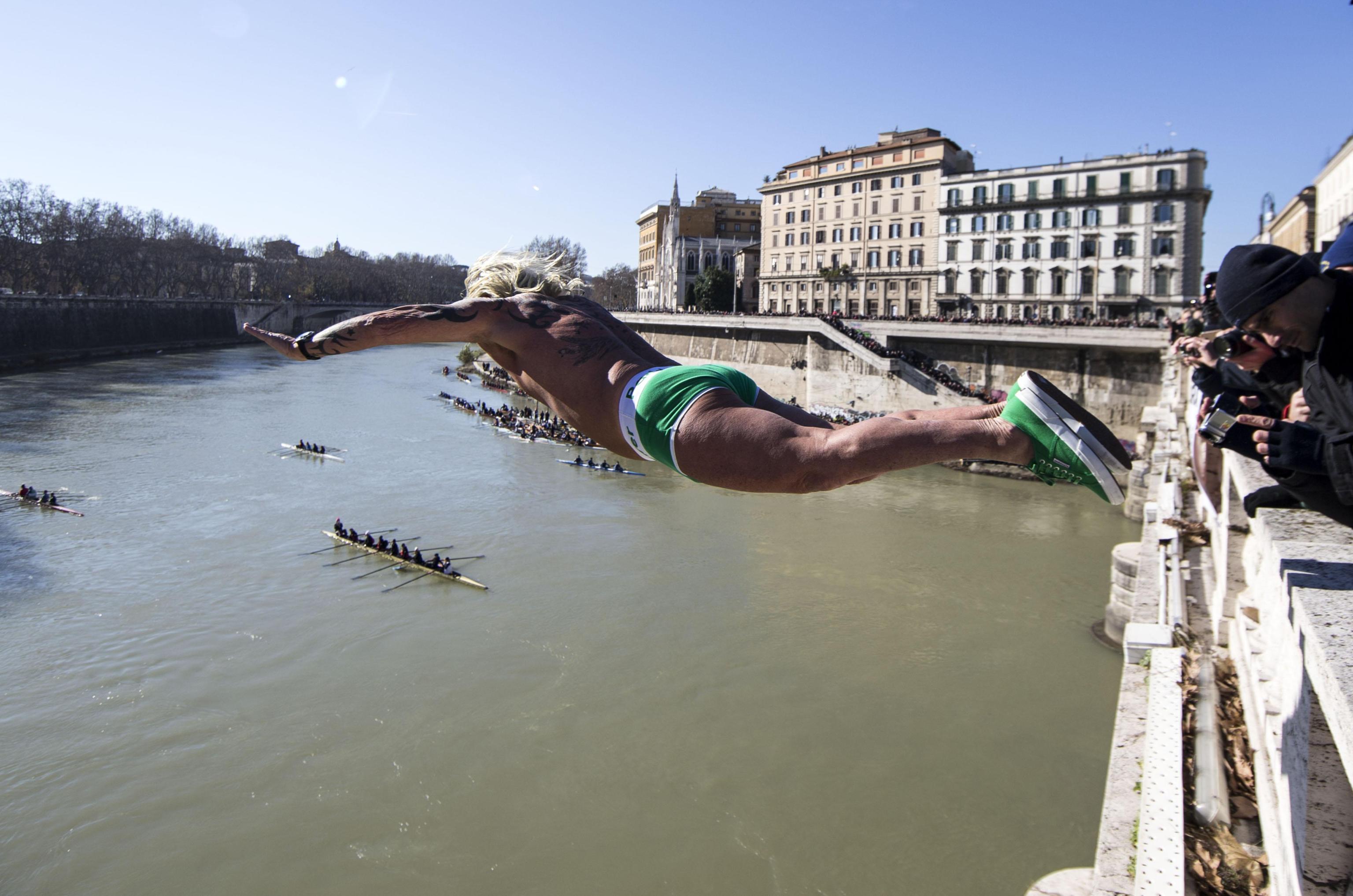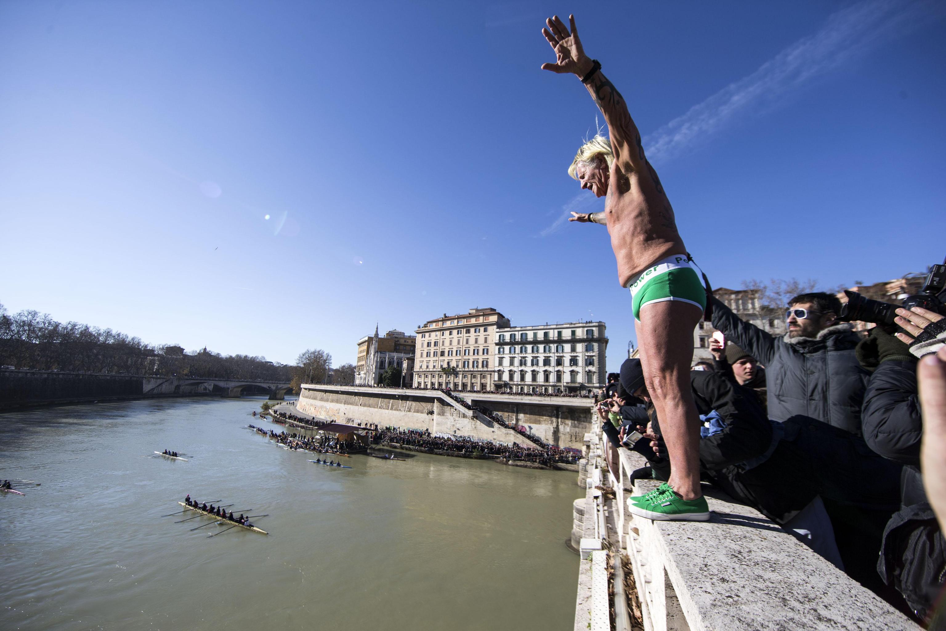 ROMA – Come ogni anno, anche oggi Maurizio Palmulli, meglio conosciuto come Mister Ok, ha dato il suo benvenuto al nuovo anno con il tuffo nel Tevere da Ponte Cavour, a Roma.
