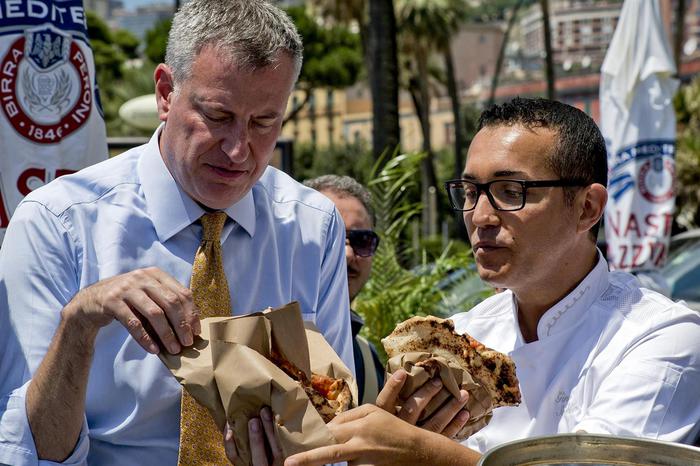 . “Mi sembra meravigliosa, mi piace molto. Napoli è una città fantastica con tante energie“, ha detto De Blasio che in serata ha poi incontrato il sindaco Luigi de Magistris. Il sindaco della Grande Mela, dopo una breve parentesi in cui è stato fotografato mentre mangia la pizza con le mani come ogni italiano che si rispetti, è tornato a mangiare la pizza all’americana: ossia con forchetta e coltello.