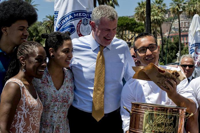 NAPOLI, 23 LUG – Pizza con la famiglia sul lungomare di Napoli per Bill De Blasio, sindaco di New York in vacanza a Capri da dove è giunto nella mattinata di mercoledì 23 luglio, per essere poi nel pomeriggio a Sant’Agata dei Goti (Benevento), paese di origine dei nonni, dove ha ricevuto la cittadinanza onoraria
