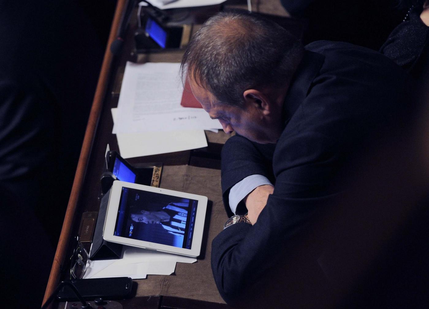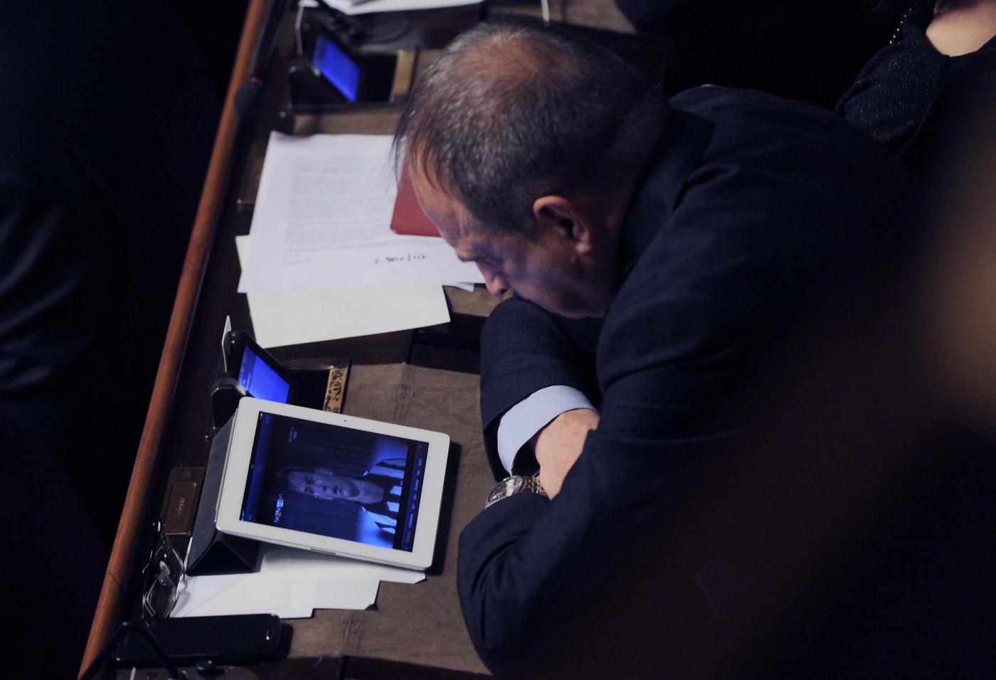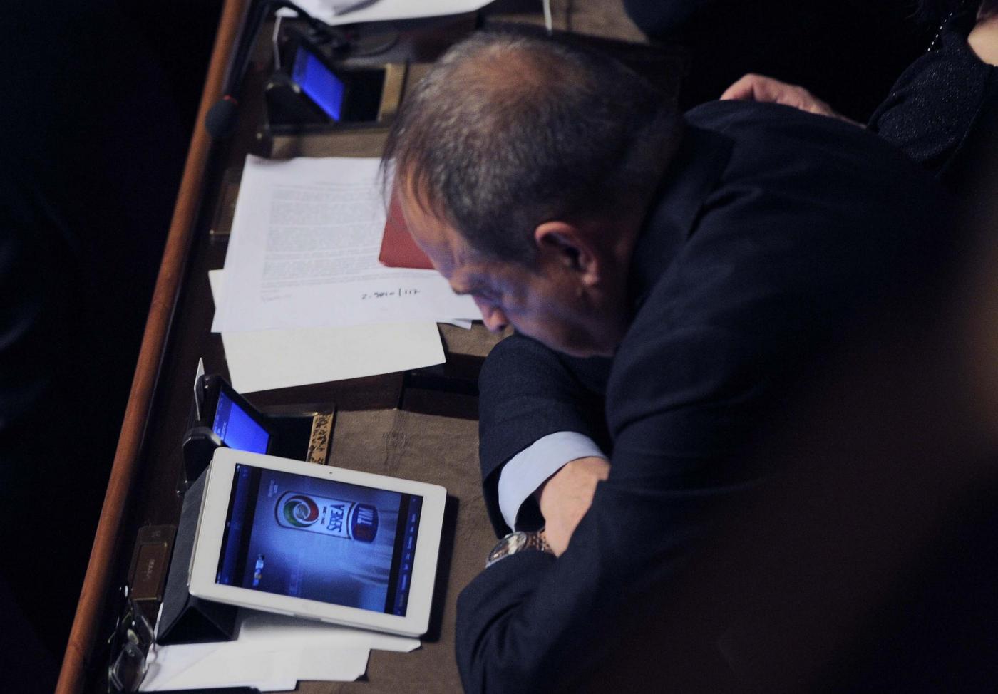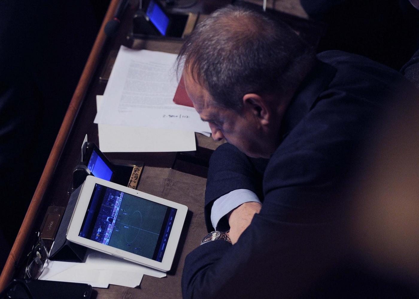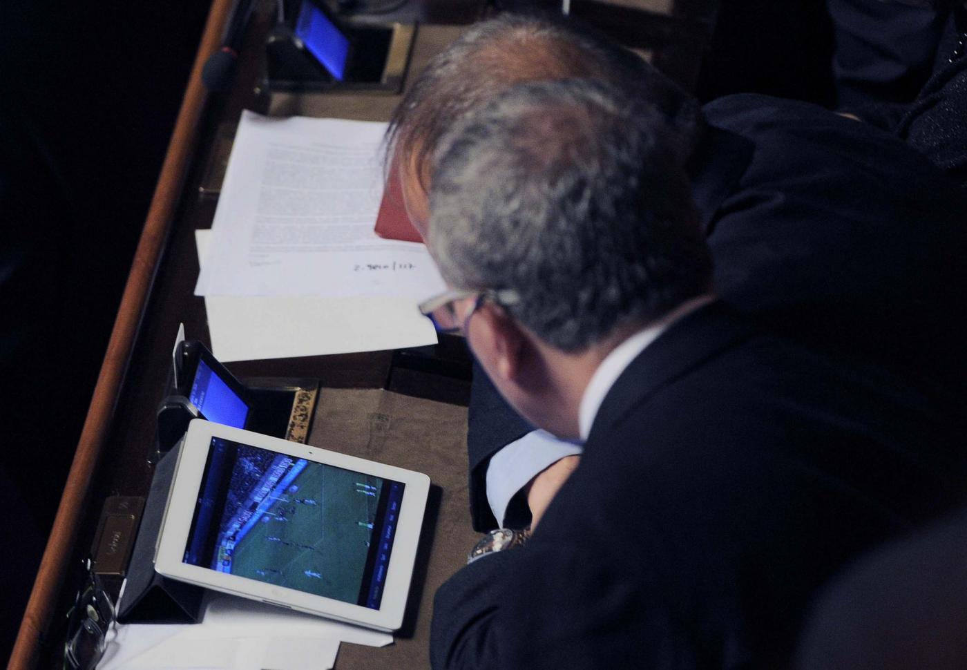 ROMA – In Senato si discute la legge di stabilità, ma non tutti sono attenti a ciò che accade e che dicono i colleghi. Carlo Lucherini,senatore Pd, non rinuncia infatti a vedere la partita tra Juventus e Cagliari. E così giovedì 18 dicembre mentre i senatori parlano il senatore Lucherini attento segue il calcio dal suo tablet.