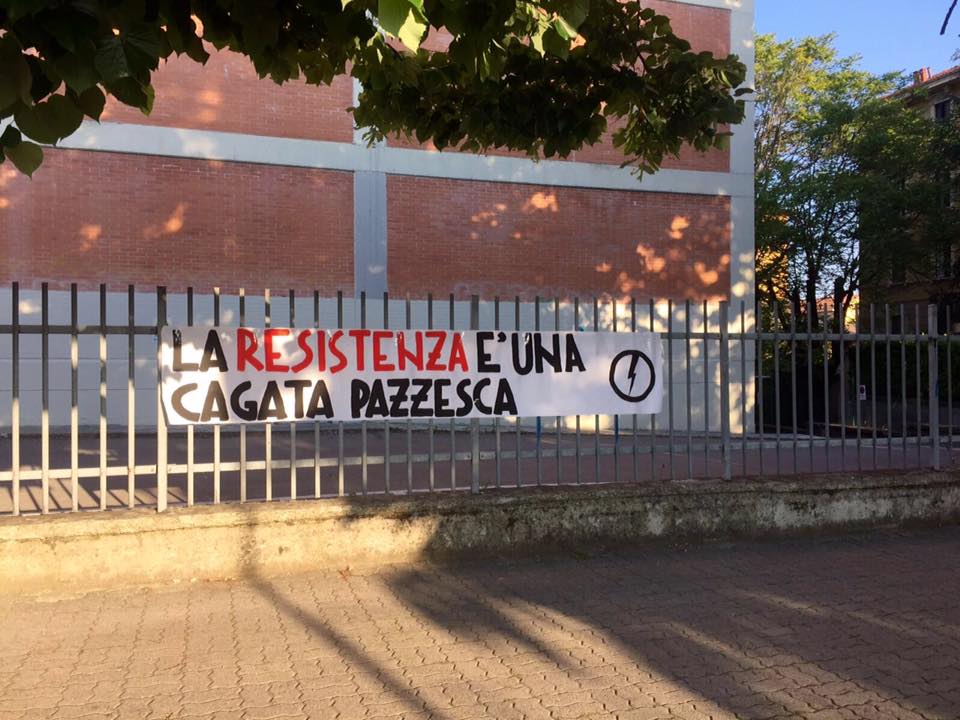 PARMA – “La resistenza una cagata pazzesca”. A scriverlo su uno striscione è il Blocco Studentesco di Parma, il gruppo di studenti che fa capo all’organizzazione di estrema destra CasaPound. Lo striscione rivendicato su Facebook, è apparso di fronte ad alcuni istituti superiori di Parma tra cui il Toschi, il Rondani, l’Itis e l’Ipsia. Quanto scritto dai neofascisti di CasaPound viene spiegato da loro stessi nel loro profilo ufficiale: