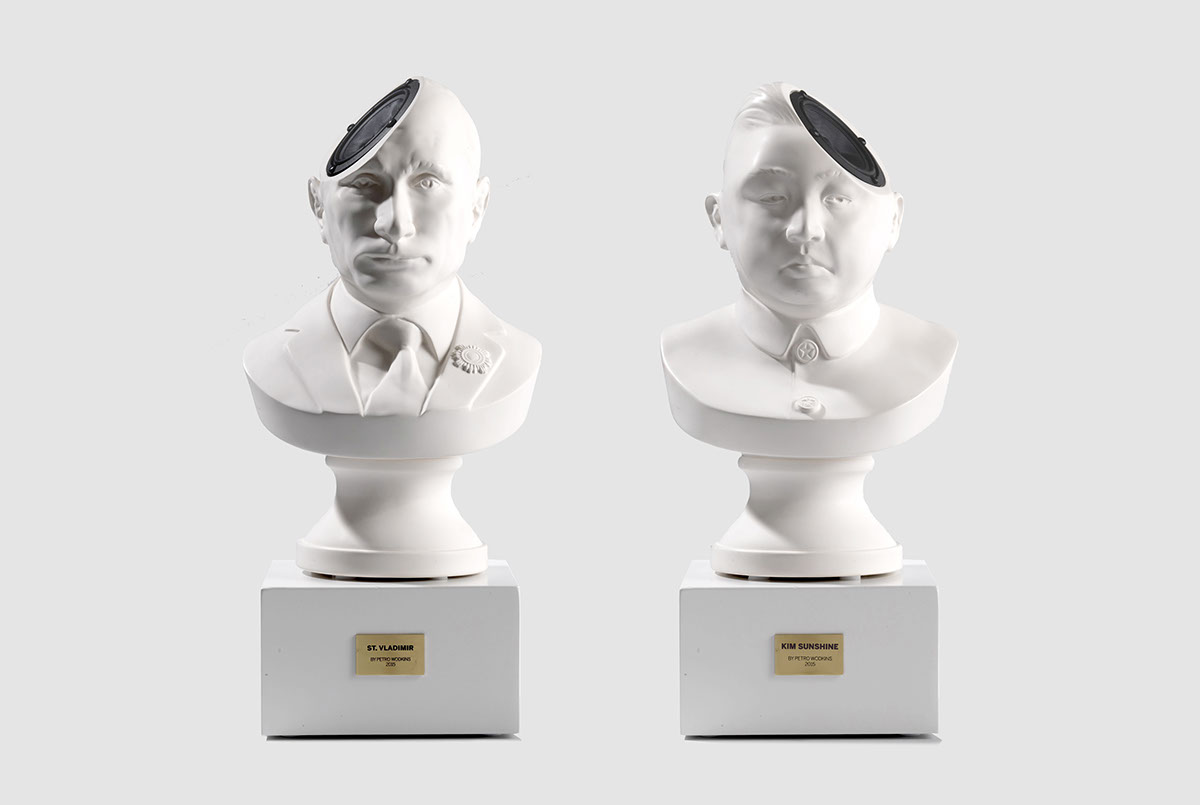 Ideate dal designer Petro Wodkins, queste casse per desktop sono una sorta di tributo ironico a questi pezzi d’arte démodé che vengono rivisitati in chiave moderna. Kim Jong-un, il dittatore nordcoreano, qui si chiama Kim Sunshine. Vladimir Putin è invece St. Vladimir.