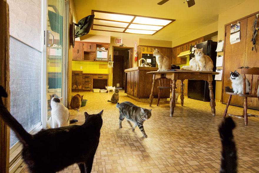 LOS ANGELES – Nella californiana Cat House on the Kings, più di 700 gatti si godono le nove vite. Si tratta di quello che viene considerato il più grande santuario del gatto del mondo, che ha ospitato più di 24mila gatti dalla sua fondazione avvenuta nel lontano 1992. The Cat House on the Kings non è però solo un santuario per i gatti indesiderati: è anche un centro in cui i padroni ricevono consigli sulla salute e sui problemi comportamentali sui loro amici felini. Il santuario è stato fondato da Lynea Lattanzio, ora diventata un tecnico veterinario esperto. Lynea spiega che i gatti non devono vivere in gabbia: “Questi animali hanno bisogno di essere in grado di correre e di arrampicarsi su un albero”.