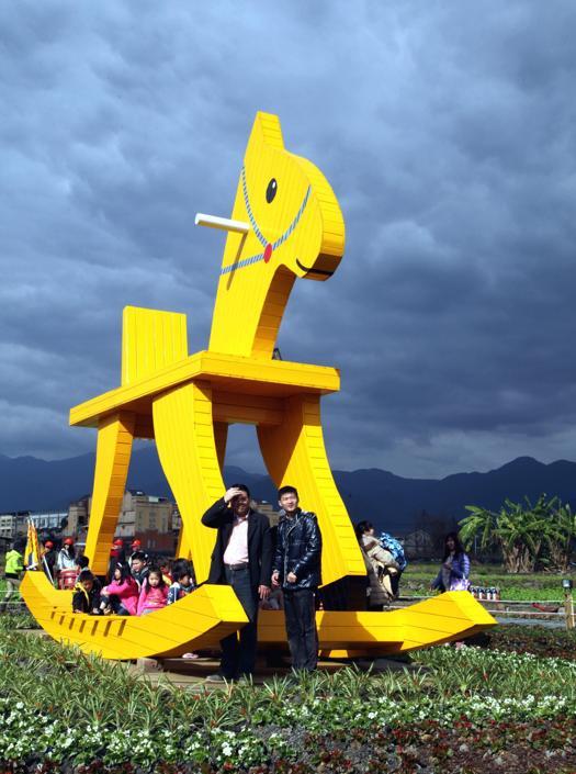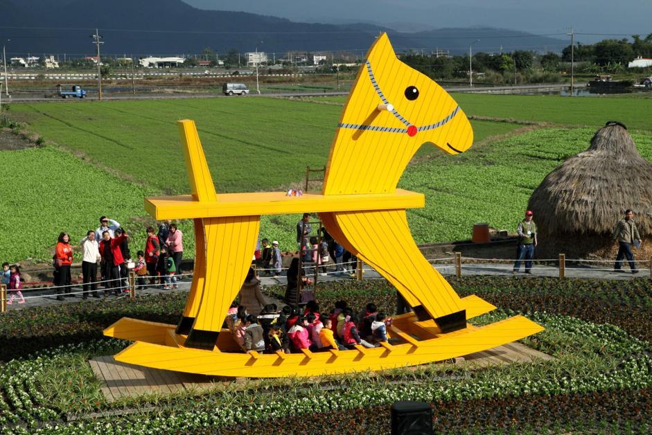 TAIWAN – A Taiwan, un gigantesco cavallo a dondolo giallo è stato costruito per festeggiare il Capodanno cinese.
